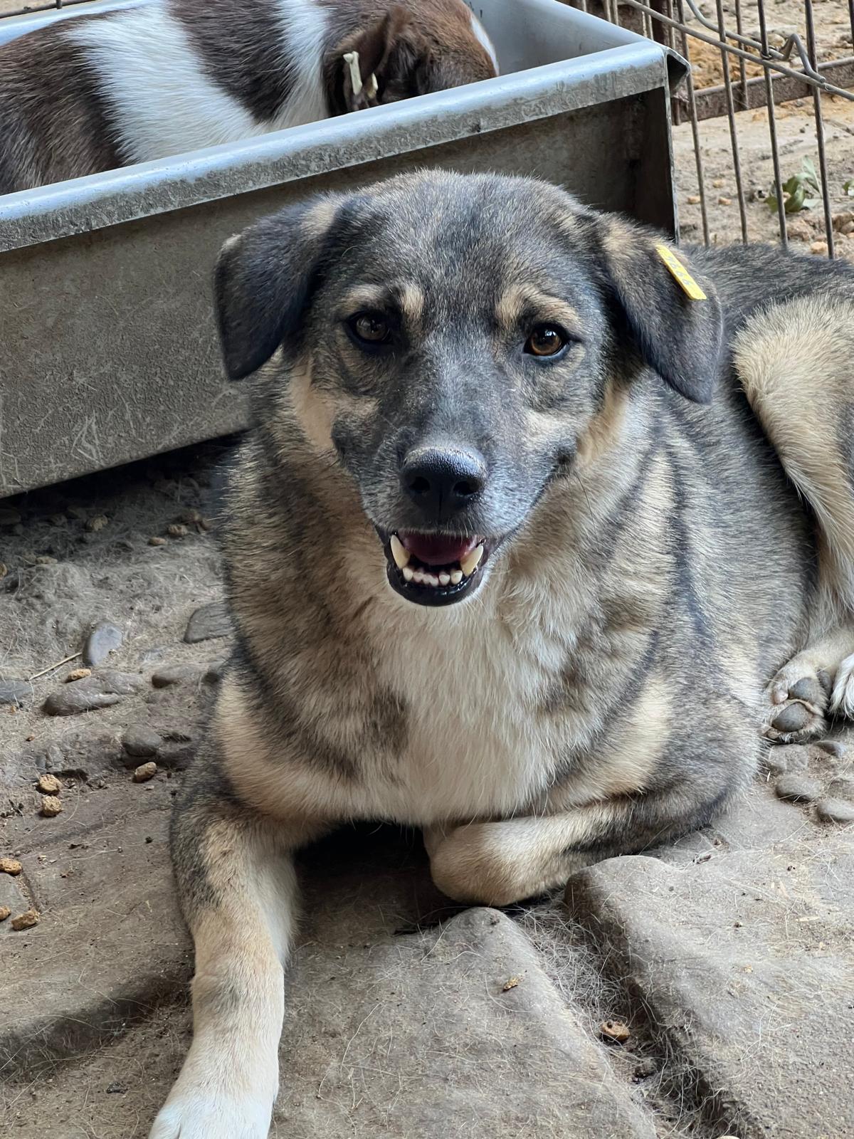 Der freundlichen Rüden COFFI haben wir in seiner Hütte angetroffen. Er wirkt von dem Trubel in seinem Kennel etwas genervt.
