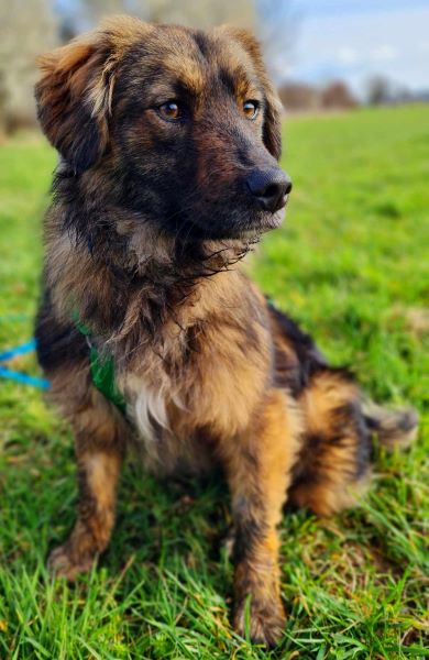 Sie ist eine sehr freundliche, recht aufgeschlossene, junge, neugierige, quirlige Hündin voller Lebensfreude. Sie lebt auf ihrer Pflegestelle mit drei anderen Hunden zusammen und zeigt sich äußerst verträglich und auch verspielt, über einen Zweithund im neuen Zuhause würde sie sich sichrlich freuen. Sie ist stubenrein, kann alleine bleiben, läuft Treppen und fährt bereits gut im Auto mit. Sie ist sehr verschmust und sucht die Nähe zu ihren Menschen. Verständnisvolle, ruhigere Kinder wären kein Problem, bei Katzen zeigt sie bisher kein jagdliches Interesse.