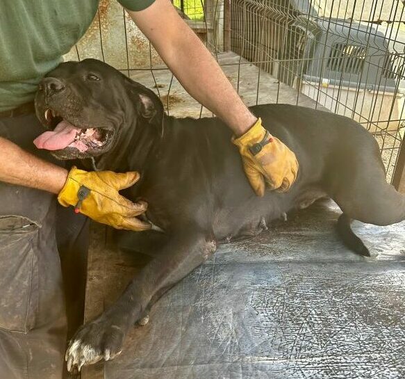 Wunderschöne Cane Corso – Hündin. CORAZON stand im Tötungsshelter zur Einschläferung an und konnte gerade noch rechtzeitig gerettet werden. Zunächst war sie in einer Klinik. Dort lebte sie gut mit einem Junghund zusammen. Im Shelter lebt sie nun alleine in einem kleinen Kennel, weil sie gegenüber den anderen Shelterhunden doch stärker und temperamentvoller ist. Sie kann auch zur Dominanz neigen und eifersüchtig reagieren, wenn der Mensch sich mit einem anderen Hund beschäftigt. Daher wäre ein Einzelzuhause besser. Auf dem Video sieht man, dass sie grundsätzlich verträglich ist. Wir haben sie dafür aus dem Kennel geholt. Sie war natürlich erregt, weil sie das erste Mal seit Wochen für wenige Minuten mehr als 6qm zur Verfügung hatte. Gegenüber den anderen Hunden war sie neutral und ließ sich gut führen. Menschen mit Molosser-Erfahrung werden diese sehr zutrauliche Hündin gut händeln können. Sie dürfte schon viele Welpen gehabt haben, bevor es in die Tötung ging.