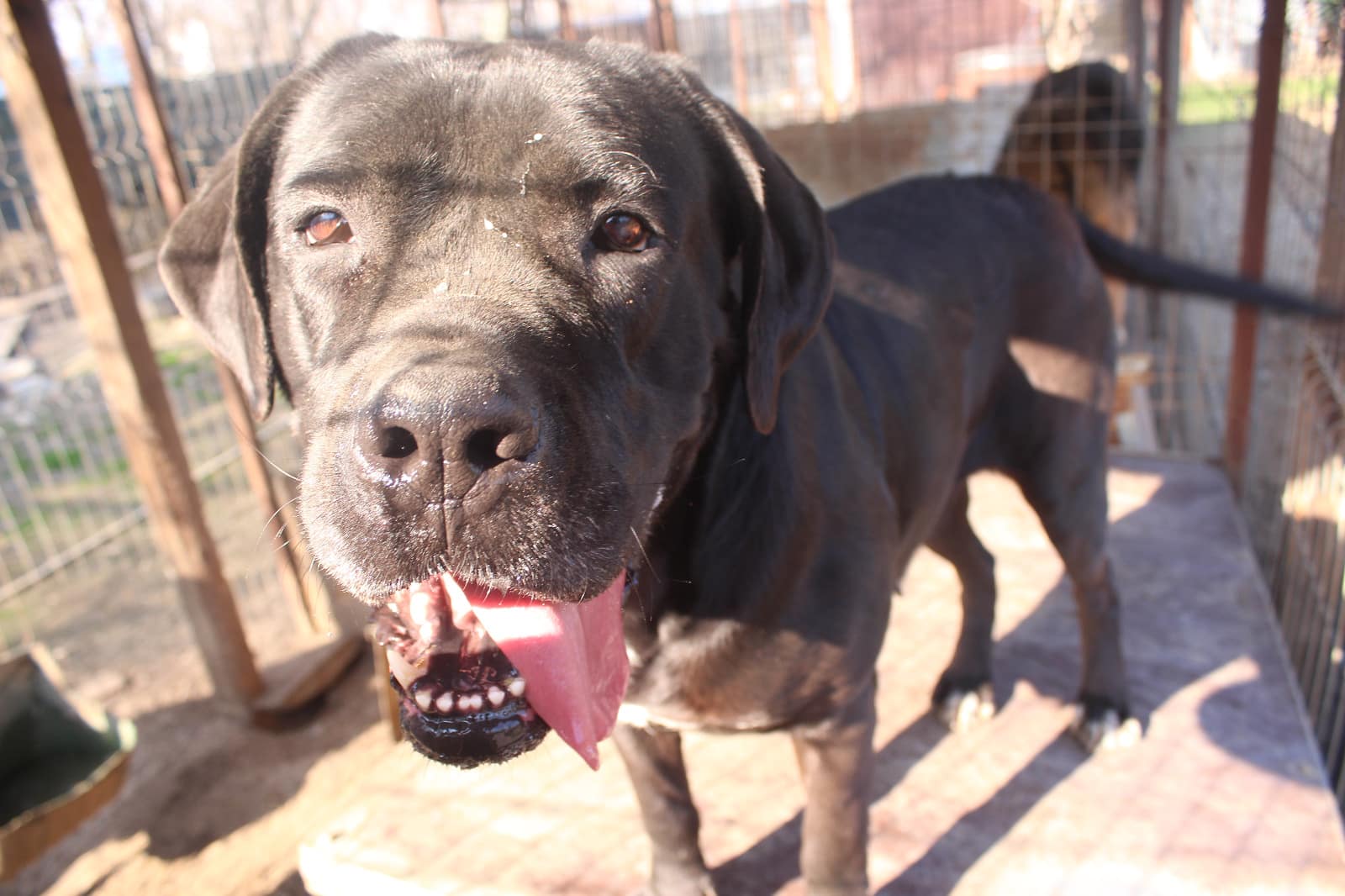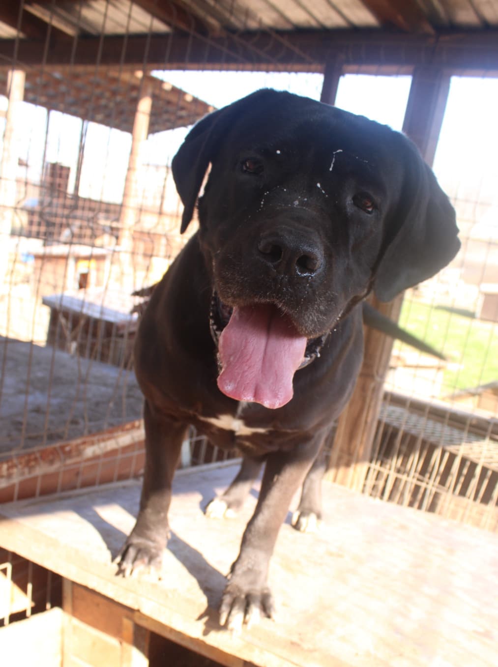 CORAZON sitzt nach wie vor alleine in einem kleinen Kennel. Sie hat sich sehr über unseren Besuch gefreut und ließ sich gerne überall anfassen. Eine nette, aktive Hündin für Molosser-Fans.