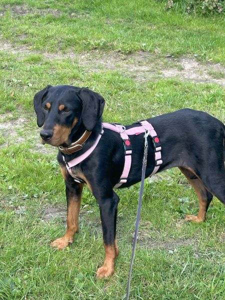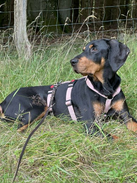 Gesucht wird für Corinna ein aktives, ländliches Zuhause, auf jeden Fall mit eingezäuntem Garten. Auf Grund des ausgeprägten Jagdtriebes wären Mensch toll, die Corinnas Leidenschaft teilen und mit ihr Schweißarbeit, Nasenarbeit oder Mantrailing machen würden.