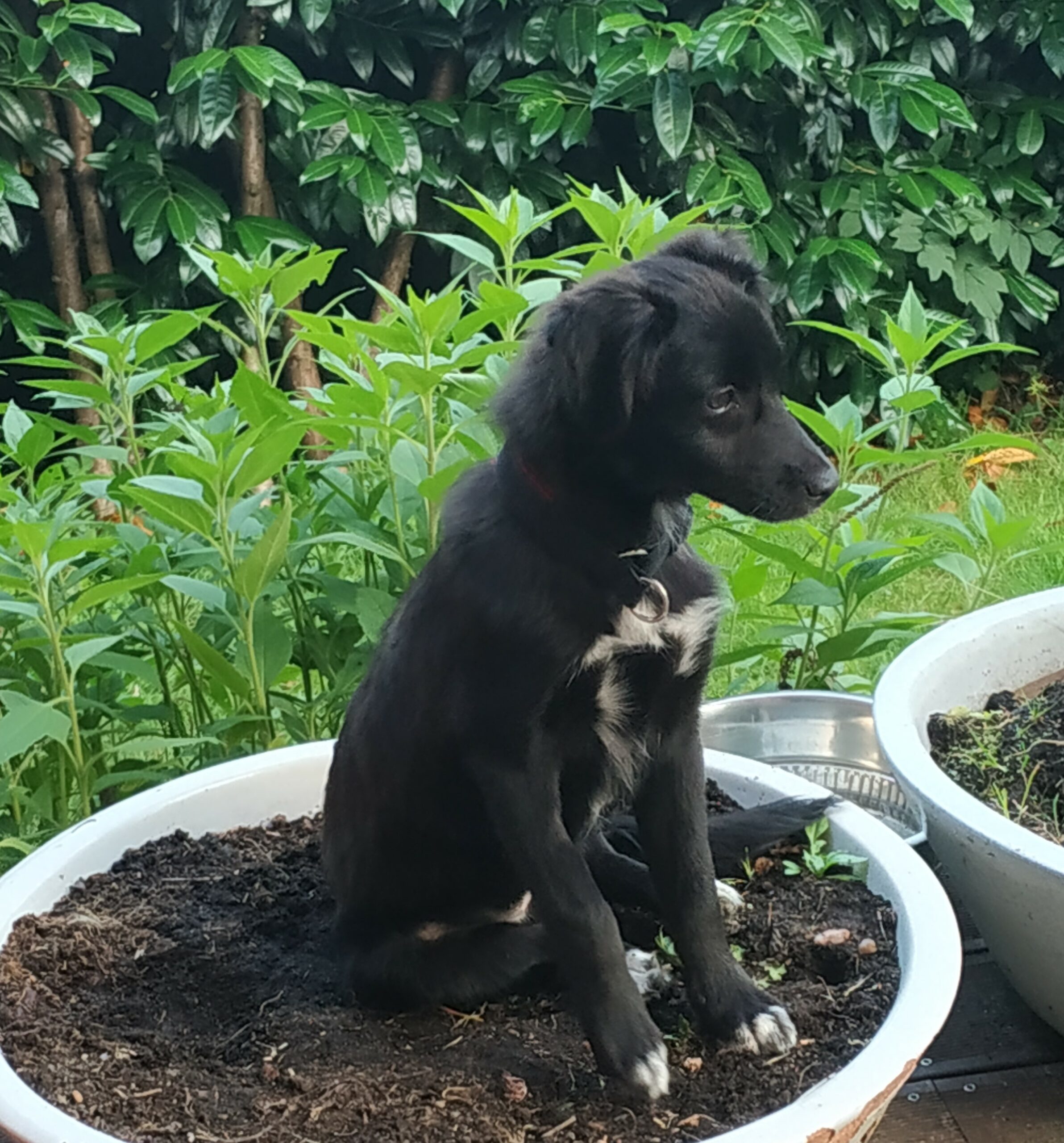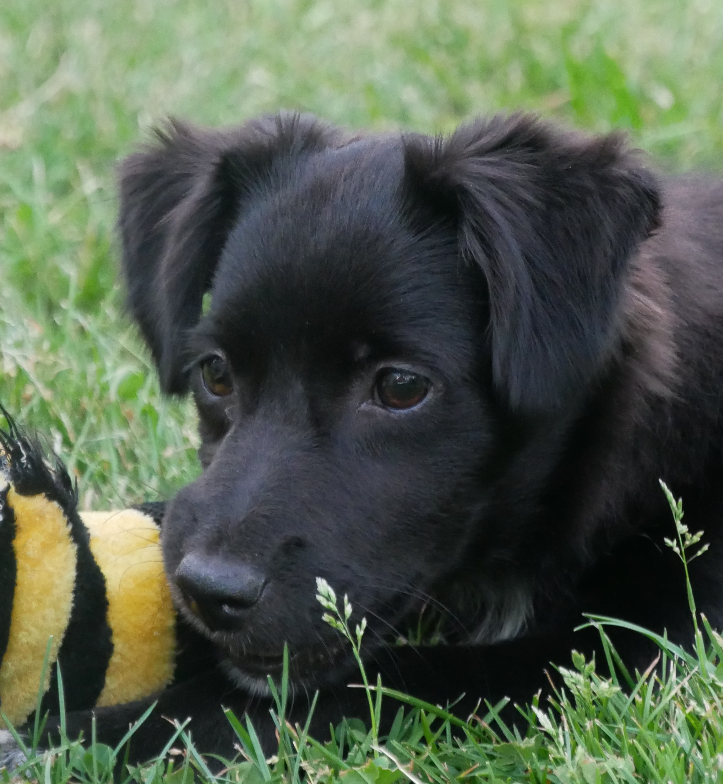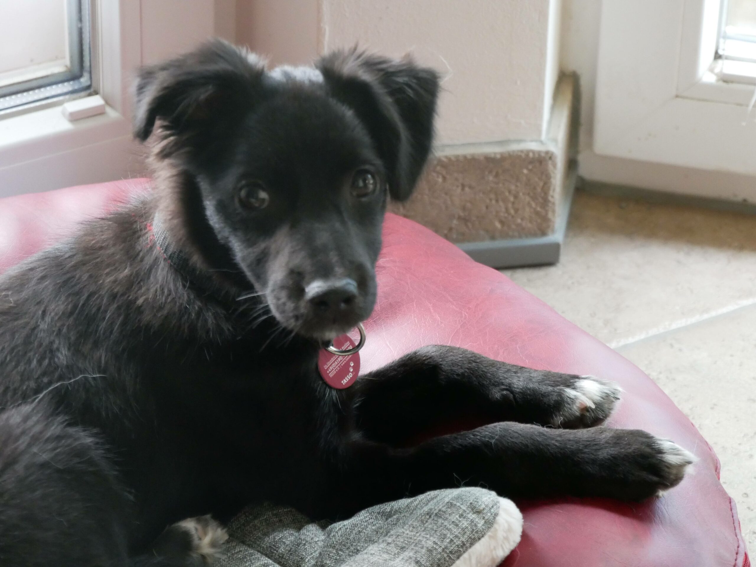 Hier bei uns zeigt sie sich jetzt als fröhliches kleines Mädchen, welches ausgelassen durch den Garten tobt, gerne auch wieder reinkommt, die Körbchen und andere weiche Plätze zu schätzen weiß, Nachts durchschläft und ihre Geschäfte draußen verrichtet. Sie kommt auf Zuruf und spielt gerne mit einem Plüschi oder Bällchen und zeigt Ansätze vom Apportieren, so dass wir uns das gut als spätere Lieblingsbeschäftigung von ihr vorstellen können.