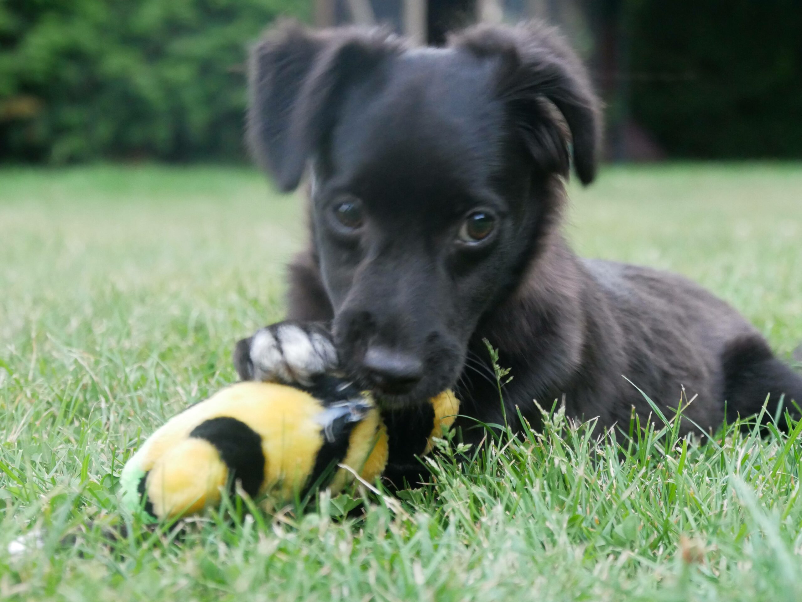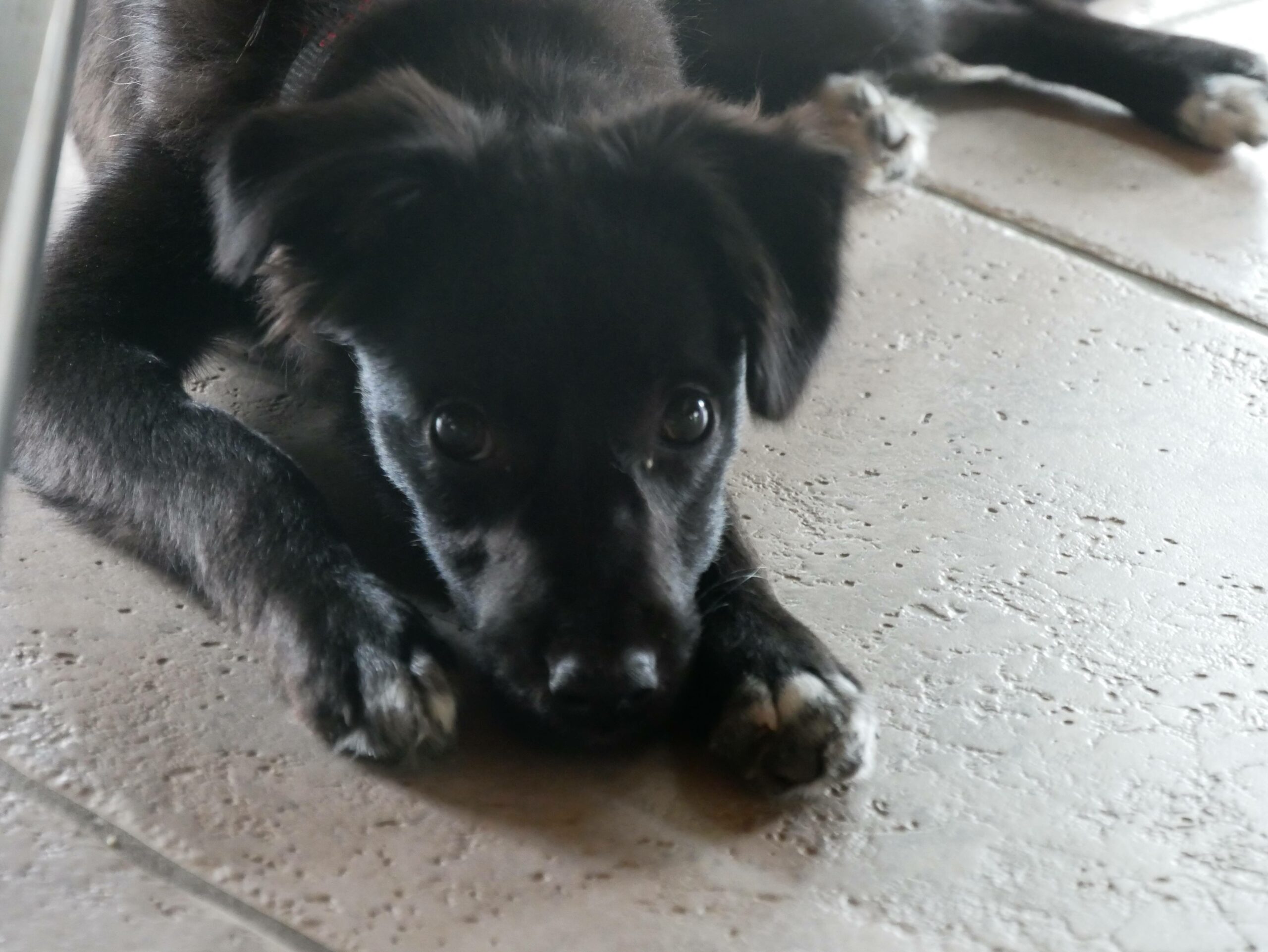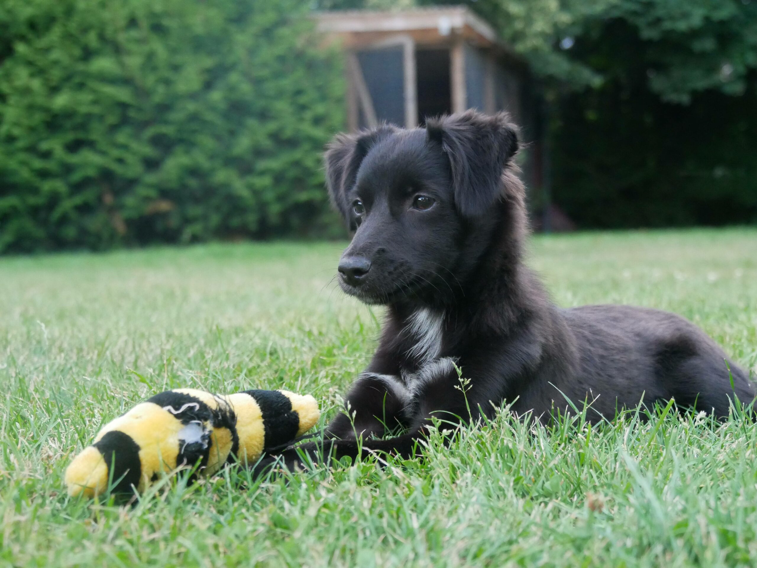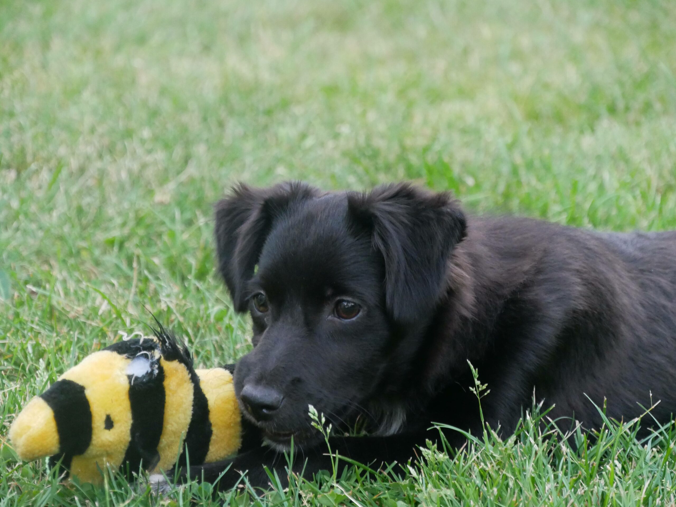 Hier bei uns zeigt sie sich jetzt als fröhliches kleines Mädchen, welches ausgelassen durch den Garten tobt, gerne auch wieder reinkommt, die Körbchen und andere weiche Plätze zu schätzen weiß, Nachts durchschläft und ihre Geschäfte draußen verrichtet. Sie kommt auf Zuruf und spielt gerne mit einem Plüschi oder Bällchen und zeigt Ansätze vom Apportieren, so dass wir uns das gut als spätere Lieblingsbeschäftigung von ihr vorstellen können.