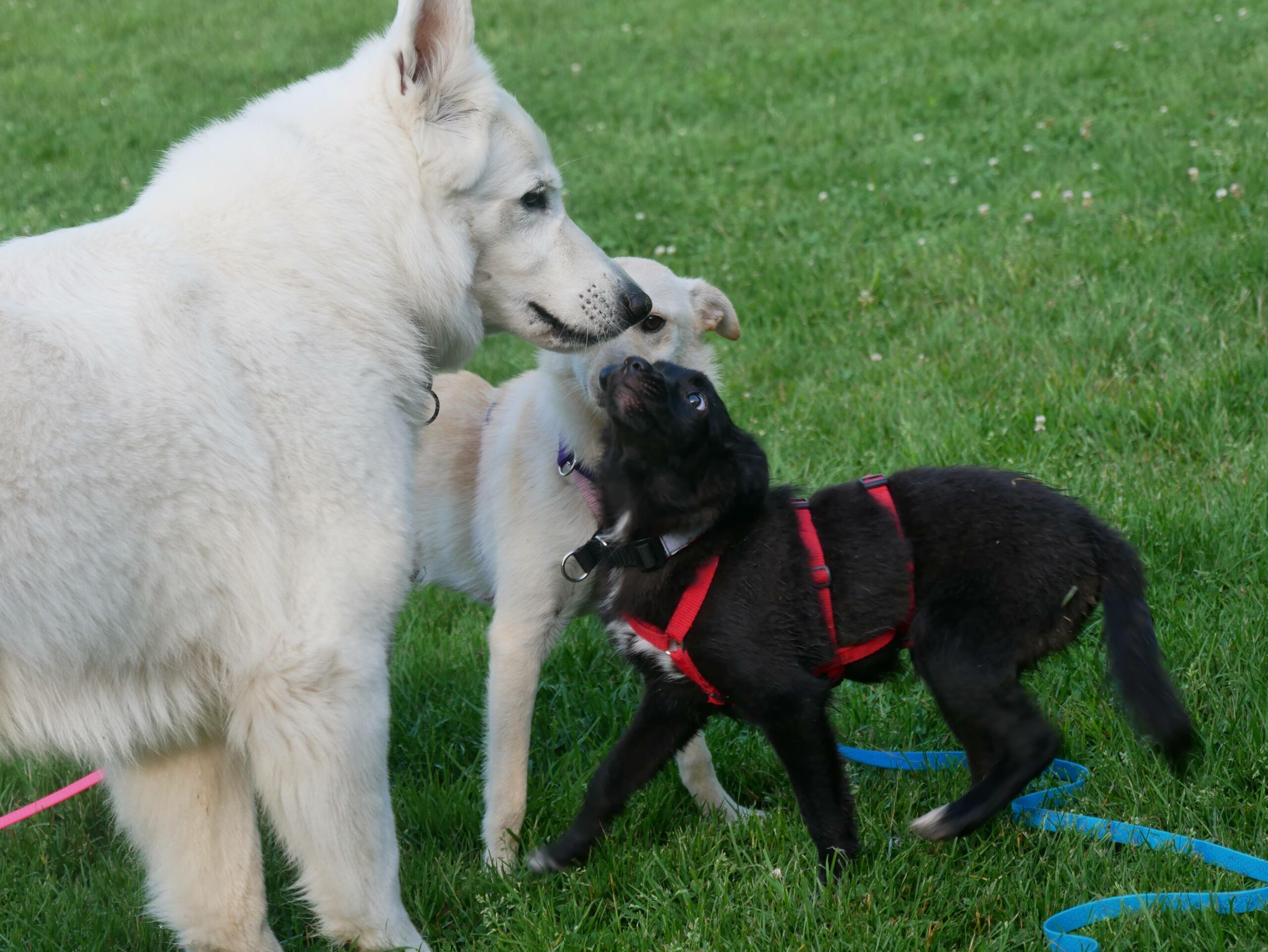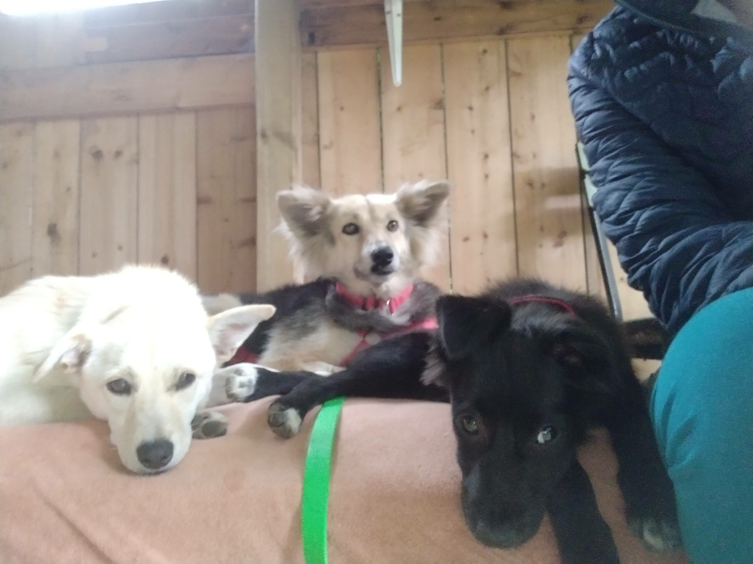 Vorbeifahrende Autos, fremde Menschen und fremde Hunde machen ihr zur Zeit zunächst noch Angst. Sind die Hunde nett und nicht so stürmisch, ist Angst vor ihnen recht schnell vergessen und sie kann Kontakt aufnehmen. Da braucht es bei den Menschen etwas länger. Von Vorteil ist hier, dass die anderen Hunde aus dem Rudel unbefangen auf die neuen Menschen zugehen; denn dann traut sich auch Cosma und wird mutig. Allein sein mag sie derzeit noch überhaupt nicht; wir üben das in kleinen Schritten; zusammen mit einem Hundekumpel klappt es aber schon gut.