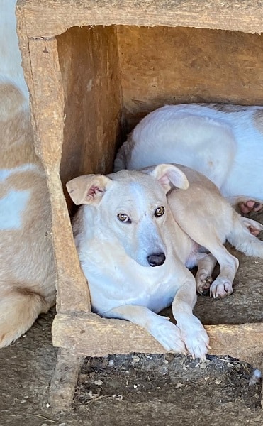 Update 04/23: Der schöne Rüde Creamy hat sich leider schüchtern entwickelt. Allerdings hat er schon positive Entwicklungen gemacht und war anfassbar. Wir sind sicher, Creamy wäre mit guten positiven, täglichen Input und Kontakt zum Menschen und souveränen Ersthund wieder in der Lage, mehr Vertrauen zu fassen. Dies fehlt leider im Shelter komplett. Da ist Creamy auf sich allein gestellt.