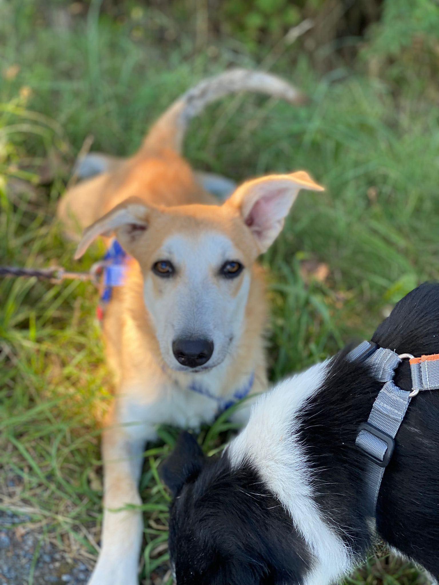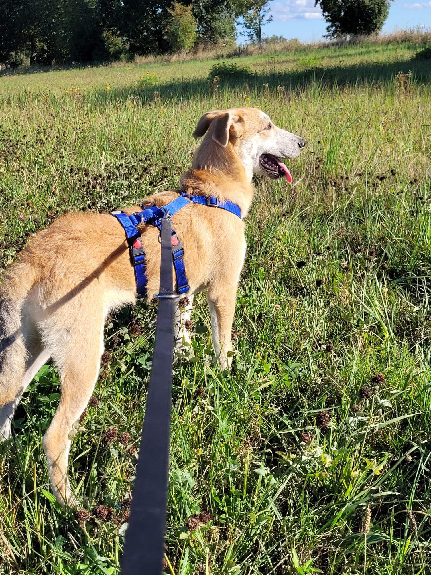 Gerne mag er die Gesellschaft von anderen Hunden an denen er sich orientieren kann.