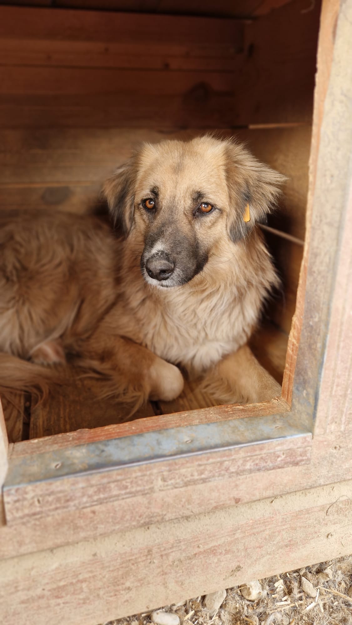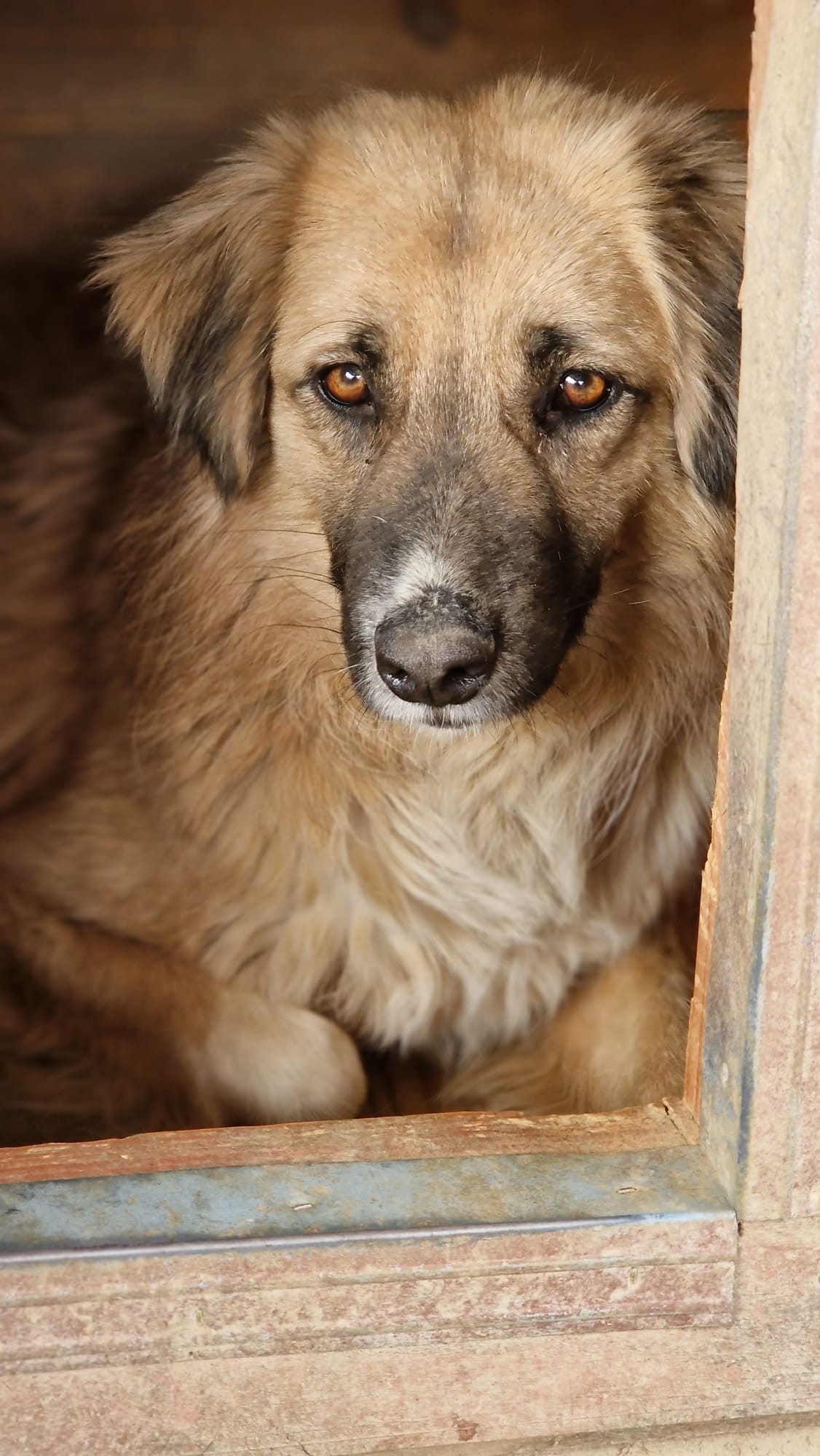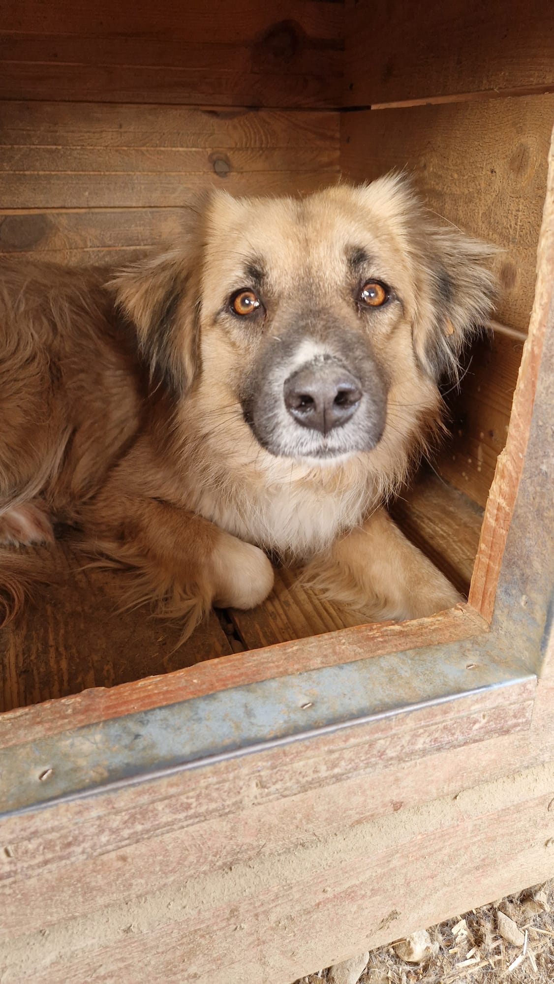Crown lag während unseres Besuchs in der Hundehütte. Wir kamen gut an sie dran und sie nahm ganz zaghaft unsere Leckerchen aus den Fingern. Unter Bedrängung haben wir sie angefasst. Sie fand das zwar komisch, aber war stets defensiv. Nach kurzer Zeit ließ sie es über sich ergehen. Sie ließ sich auch gut aus der Hütte treiben, damit wir ihr Gangbild beobachten konnten. Sie ist eine sehr hübsche Hundedame, mit tollem dichten Fell und macht einen gesunden Eindruck. Menschen mit ausreichend Hundeerfahrung würden sie relativ schnell zutraulicher bekommen. Zu dem ist sie verträglich. Hoffentlich sehen ihre Menschen Crown und holen sie da raus.