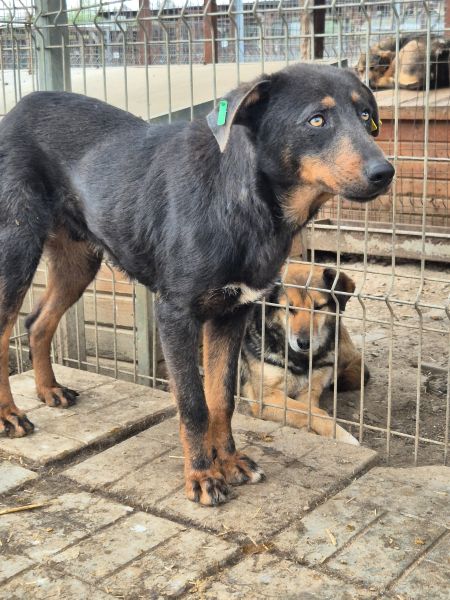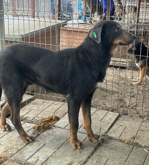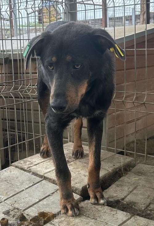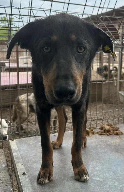 Dieser beeindruckend schöne Rüde begegnete uns mit einer Mischung aus Neugier und Vorsicht. Er war interessiert an unserem Besuch und schien, als wollte er erstmal verstehen, was wir dort machen. Sein prüfender Blick galt aber nicht nur uns, sondern seiner gesamten Umgebung. Wir denken, dass er noch nicht lange im Shelter sitzt. In dieser für ihn ungewohnten Situation wirkte er auf uns aufmerksam, abwartend und eher ruhig abwägend selbst in den Momenten in denen er auswich. In seiner gemischten Kennelbesetzung wirkt er sehr verträglich.