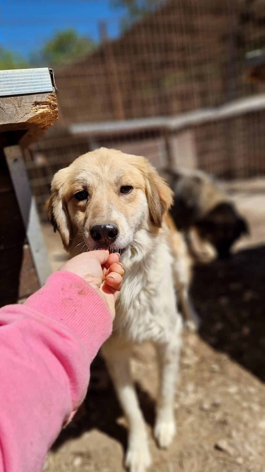 CURTIS hat sich leider – wie erwartet – zurückhaltend entwickelt. Er weicht aus, wenn man auf ihn zugeht, sodass wir ihn nicht anfassen konnten. Leckerlis nimmt er aber noch gerne und vorsichtig aus der Hand. Er kam auch von sich aus zu uns und schnupperte an unserer Hand. Für mehr fehlte dem unglaublich hübschen Kerl leider der Mut.