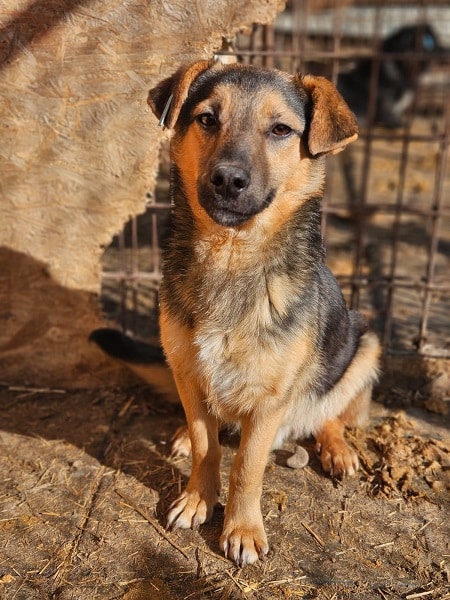 Als wir DACLAN’s Zwinger betraten, zeigte er sich uns gegenüber neugierig, aber noch vorsichtig. Weiß man doch nie, was es zu bedeuten hat, wenn sich hier mal Menschen herverirren. Durch die Freude seines Zwingerkollegen Nico verstand DACLAN schnell, dass von uns keine Gefahr ausgeht und kam sich ebenfalls die mitgebrachten Leckerchen holen. Seine Skepsis löste sich und wir konnten ihn streicheln, messen und begutachten. Wir sind uns sicher, dass DACLAN in einer Pflegestelle oder einem neuen Zuhause sehr schnell auftauen und viele tolle Eigenschaften von sich zeigen wird. Denn er hat das Herz am rechten Fleck.