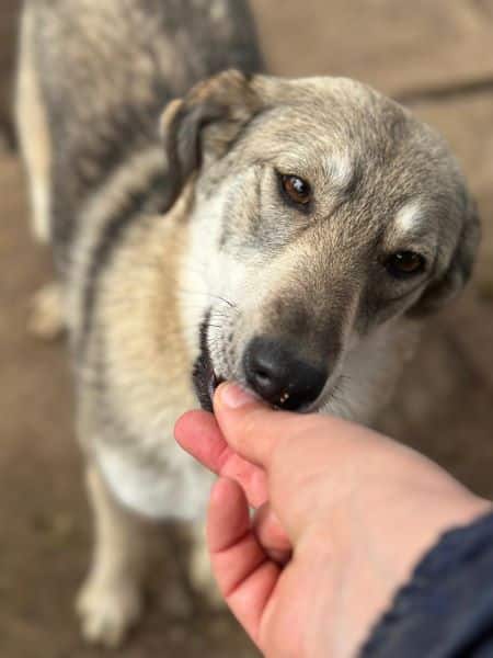 Dafna hat sich zu einer neugierigen, offenen und sehr verträglichen Hündin entwickelt. Sie ist selbstständig zu uns gekommen, um sich Leckerchen abzuholen. Menschen mit Hundeerfahrung – im Idealfall mit Auslandshunden – würden Dafna in wenigen Tagen für sich gewinnen können.