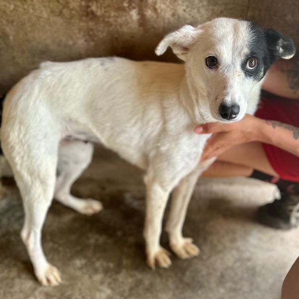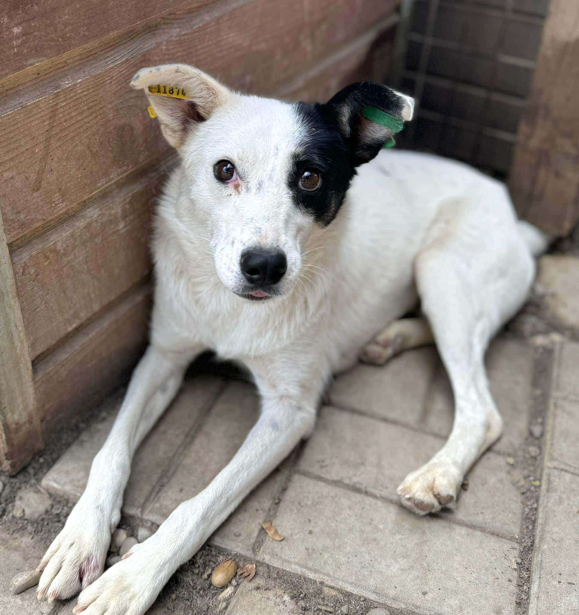 Sehr zutrauliche und super nette Hundedame in mittlerer Größe. War trotz der Enge im VetKennel uns gegenüber sehr offen, freundlich und auch mit ihren Hundekumpels absolut verträglich. Richtig nette Hündin – für die ganze Familie. Sie sitzt nur im VetKennel, weil neu im Shelter. Bald geht es in die Außenkennel, wo ein Überleben Glückssache ist. Wird sie es rechtzeitig raus schaffen?