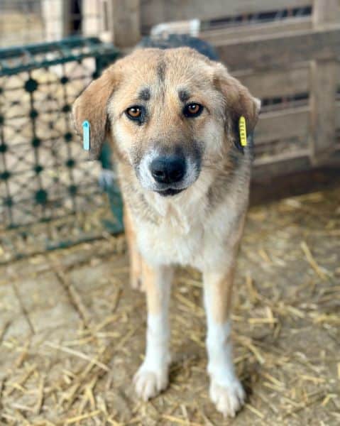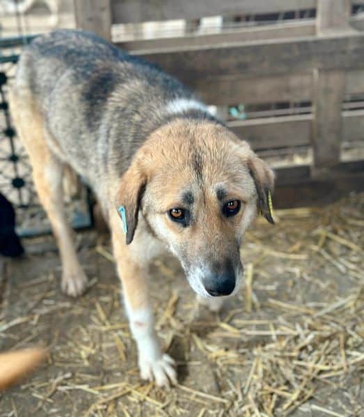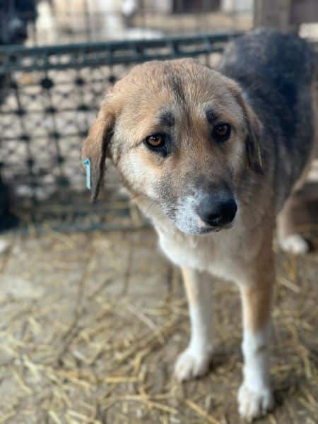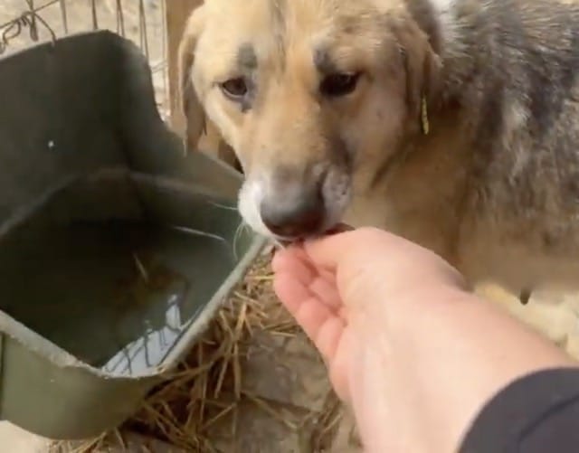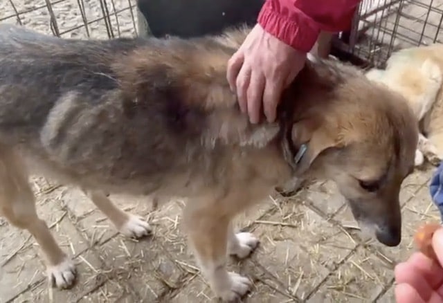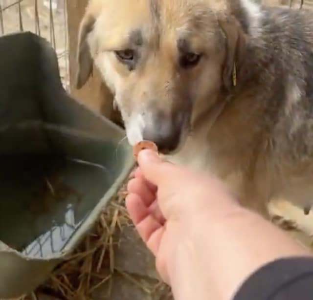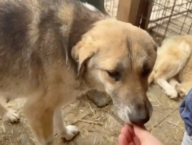 Diese traurige Augen gehen richtig ins Herz. Was muss diese Hündin, die früher auch mal Welpen gehabt hat, schon alles erlebt haben, um jeglichen Glanz aus ihren Augen verloren zu haben. Wir suchen hier dringend Menschen, die sich dieser armen Hundeseele annehmen und mit den Monaten es schaffen wieder Lebensfreude in ihr zu wecken. Uns gegenüber war sie stets freundlich, nahm von der ersten Sekunde sehr gut Leckerchen, aber da sie uns nicht kannte, wusste sie nicht, ob wir es wirklich gut mit ihr meinen, wenn wir sie anfassen. Bei so einer geschundenen Hundeseele auch gut zu verstehen. Als sie merkte, dass wir sie wirklich nur vorsichtig und lieb streicheln wollten, ließ sie es zu. Nach etwas Eingewöhnungszeit und Vertrauen in ihre Menschen wird sie es schnell genießen können. Sie kann leicht futterneidisch reagieren, aber wie man auf dem Leckerchenvideo sieht, ist es nicht ausgeprägt. Dennoch raten wir gerade zu Anfang besser zu getrennten Fütterungen bis man die Hunde besser kennt bzw. die Hunde sich kennen. Sie zeigte sich ansonsten sehr verträglich und suchte auch von sich aus immer wieder unsere Nähe. Sie würde einen schnell gerne überall hin folgen wollen und wer weiß, eines Tages mit einem Leuchten in den Augen. Was gäbe es für ein schöneres Geschenk?