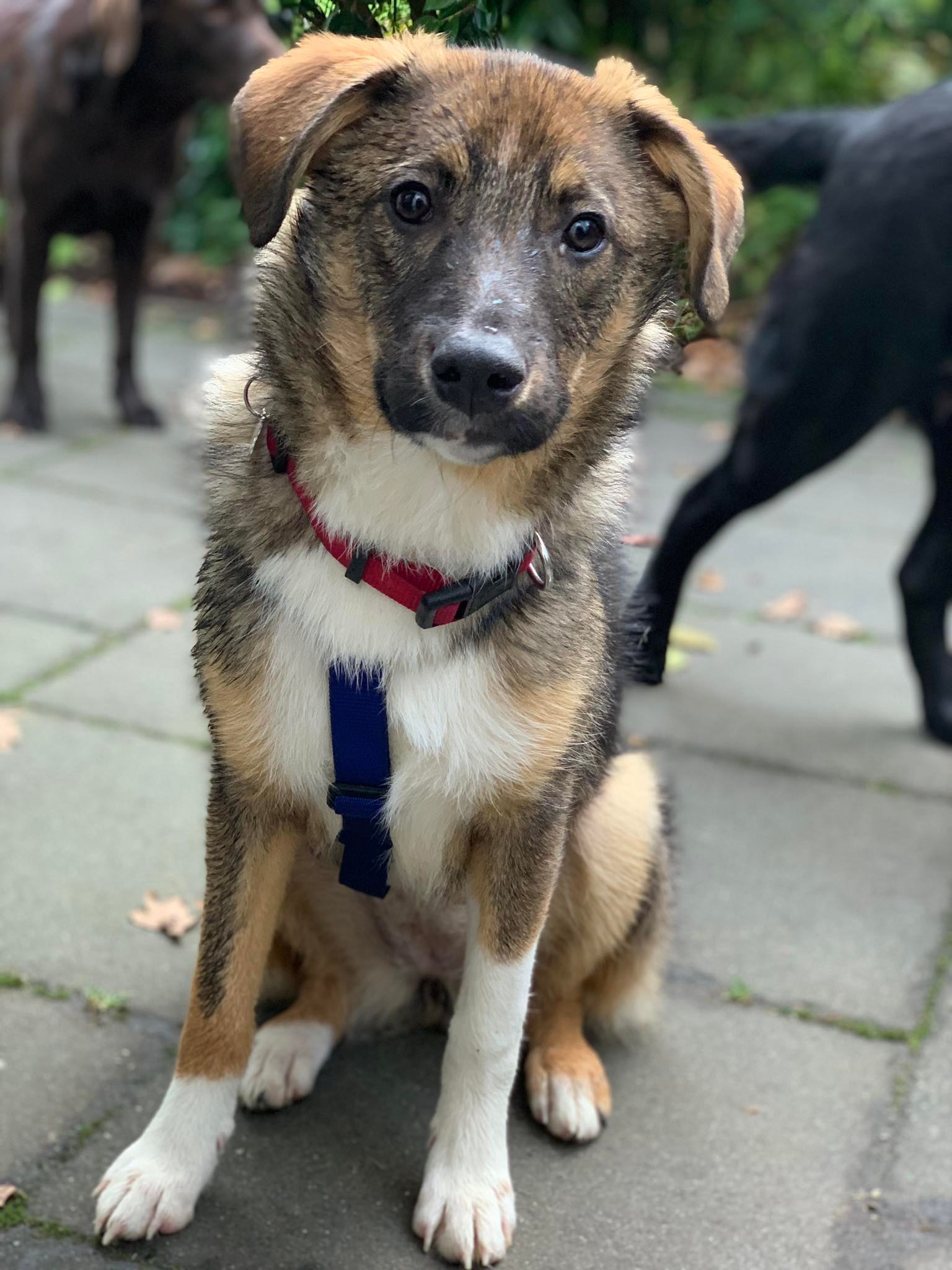 Daja orientiert sich an den älteren Hündinnen auf der Pflegestelle, die ihr