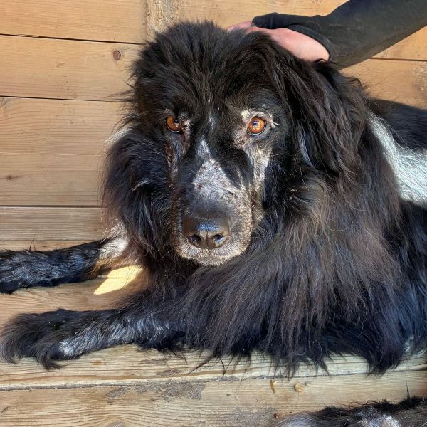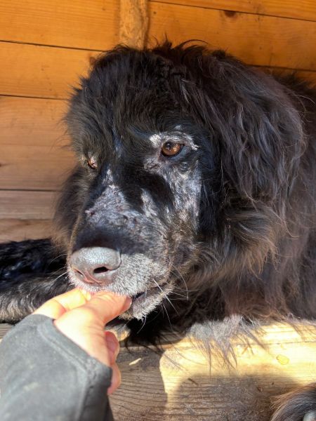 Er lebt verträglich mit Rüden und Hündinnen in einem Kennel. Aufgrund seiner Unsicherheit und seiner Größe sollte er nur an ein sehr erfahrenes Zuhause vermittelt werden.