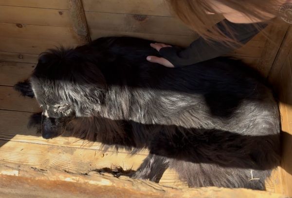Der sanfte DAMIAN saß in seiner Hütte, als wir den engen Kennel betraten. Er begegnete uns sehr ruhig und ließ sich vorsichtig streicheln. Man merkte DAMIAN an, dass Körperkontakt für ihn nicht alltäglich ist, er blieb dabei aber stets freundlich. Die angebotenen Leckerchen nahm er vom Boden, von der Hand traute DAMIAN sich noch nicht so recht. Die Hautprobleme bestehen nach wie vor.