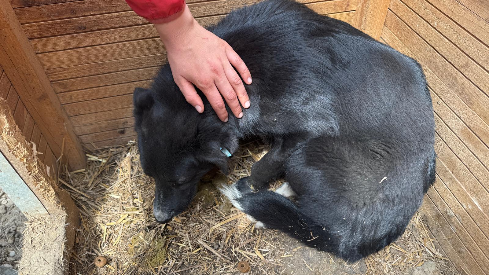 DANA ist leider weiterhin unsicher. Sie war zwar neugierig, blieb aber auf Abstand. Unsere Leckerlies nahm sie vom Boden. Wenn wir uns ihr annäherten, flüchtete sie. Als wir DANA in der Hütte den Fluchtweg versperrten, konnten wir sie dort gut anfassen und streicheln. Dana senkte dabei den Kopf und zeigte kein Abwehrverhalten. DANA kennt den Kontakt zu Menschen nicht und braucht daher einen erfahrenen Platz.