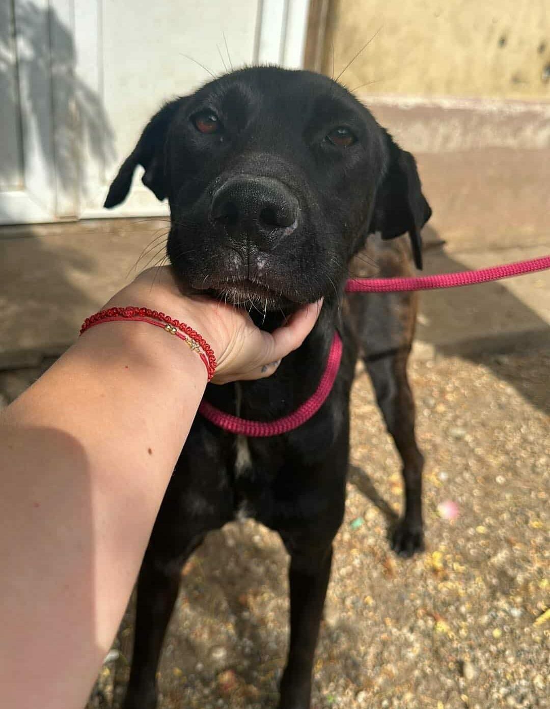 Die freundliche Hündin ist aktuell sehr abgemagert und dünn. Wir wissen nicht, was sie erlebt hat. Sie zeigt sich uns gegenüber interessiert und und ist gut anfassbar. Mit anderen Hunden ist sie verträglich. Wir hoffen sehr, dass die zarte, hübsche Hündin, bald ihre Chance findet auszureisen.