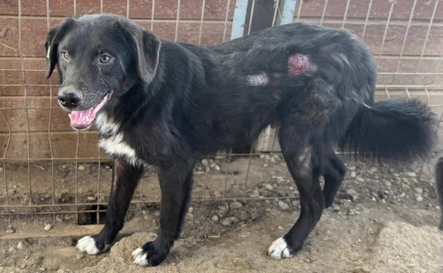 DANIELO sieht schlimm aus. Er hat wieder extreme Hautprobleme, eine Bisswunde und scheint einfach im Shelter überhaupt nicht zurecht zu kommen. Er ist erst 1 1/2 Jahre alt und sieht schon so geplagt aus – wir wünschen uns dringend einen Platz für DANIELO! Er ist neugierig und nimmt Leckerlies aus der Hand. Bei Berührungsversuchen weicht er zwar zurück, aber in der Hütte ließ er sich von uns problemlos streicheln und zeigte dabei keinerlei Abwehrverhalten.