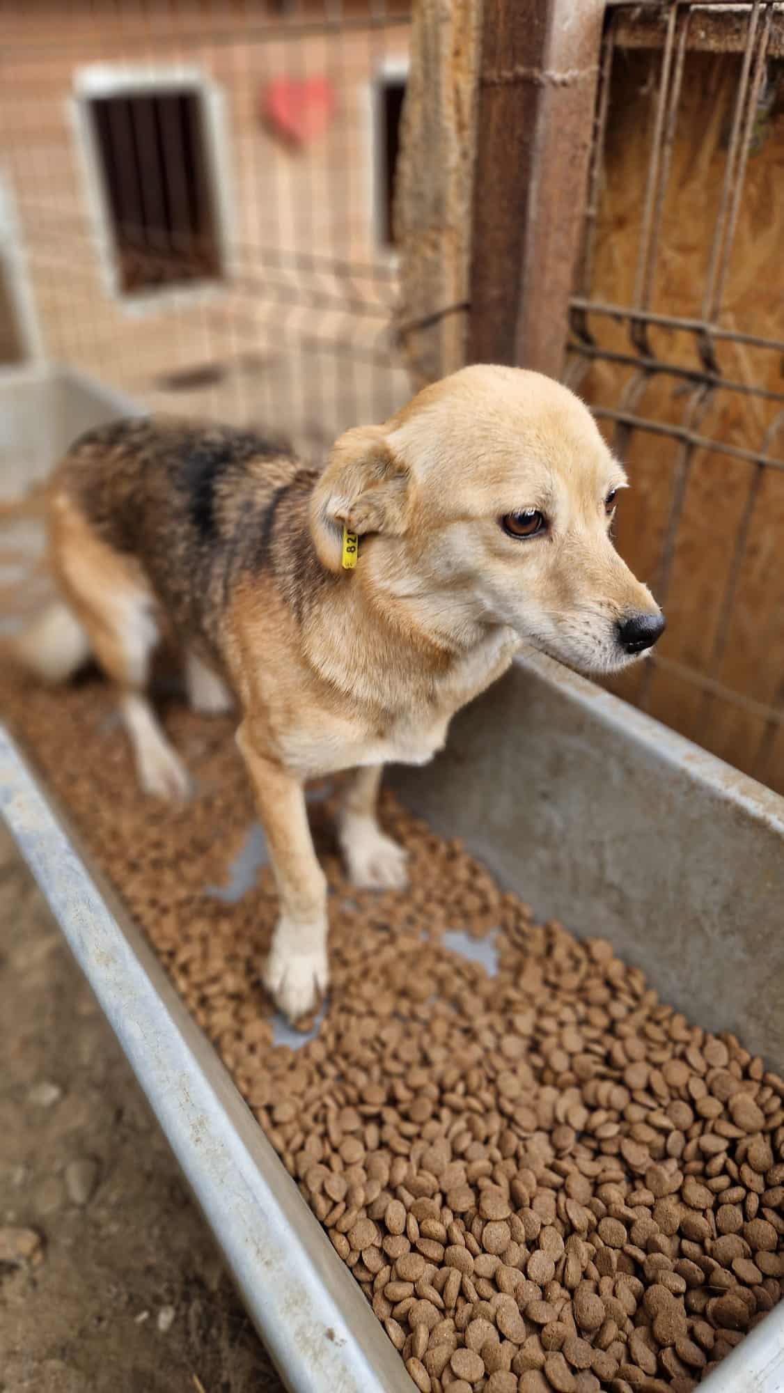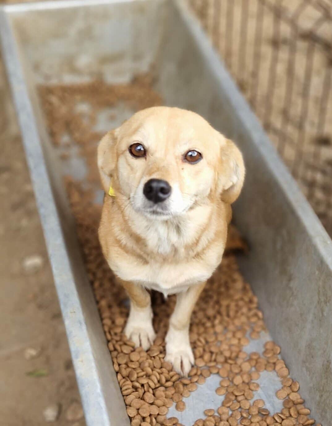 DANISA saß völlig fertig und zitternd in der Futterschüssel, der Lärm in ihrem Bereich ist angsteinflössend. Sie nahm zaghaft und vorsichtig Kontakt zu uns auf und zeigte sich dann als ganz liebe Hündin, die sich problemlos streicheln ließ und froh war, dass wir es gut mit ihrem meinen. DANISA versuchte einfach nur, alles richtig zu machen.
