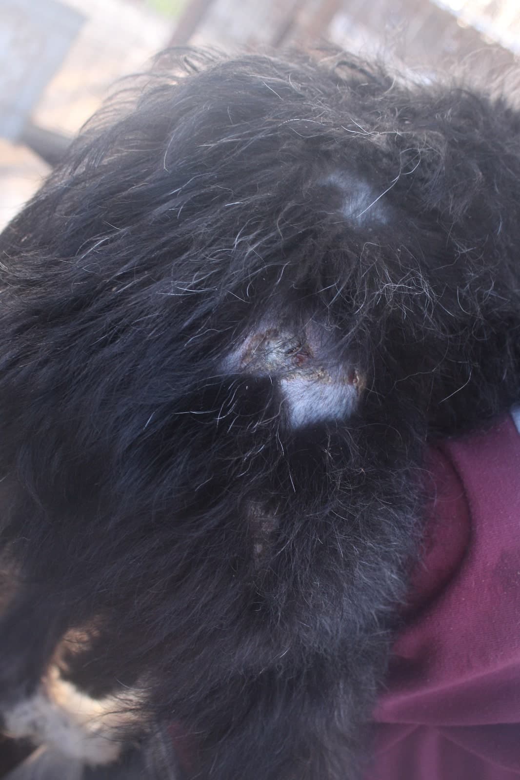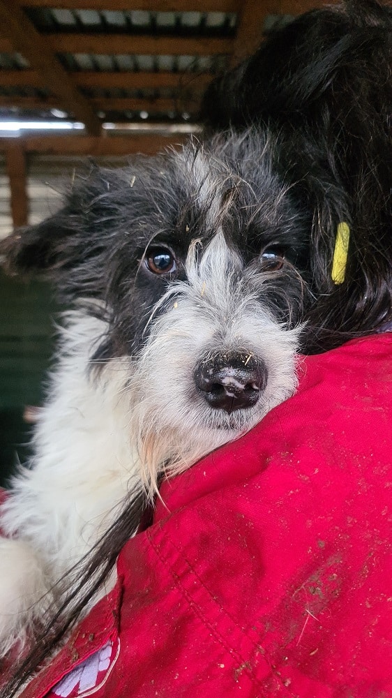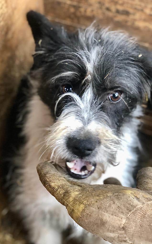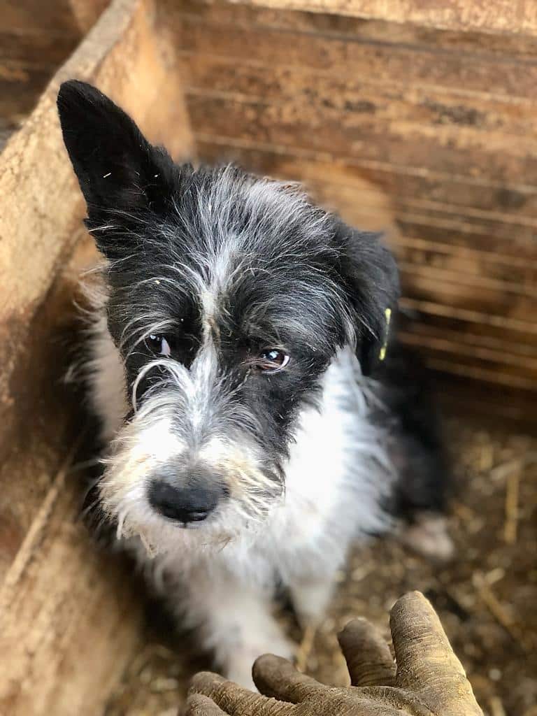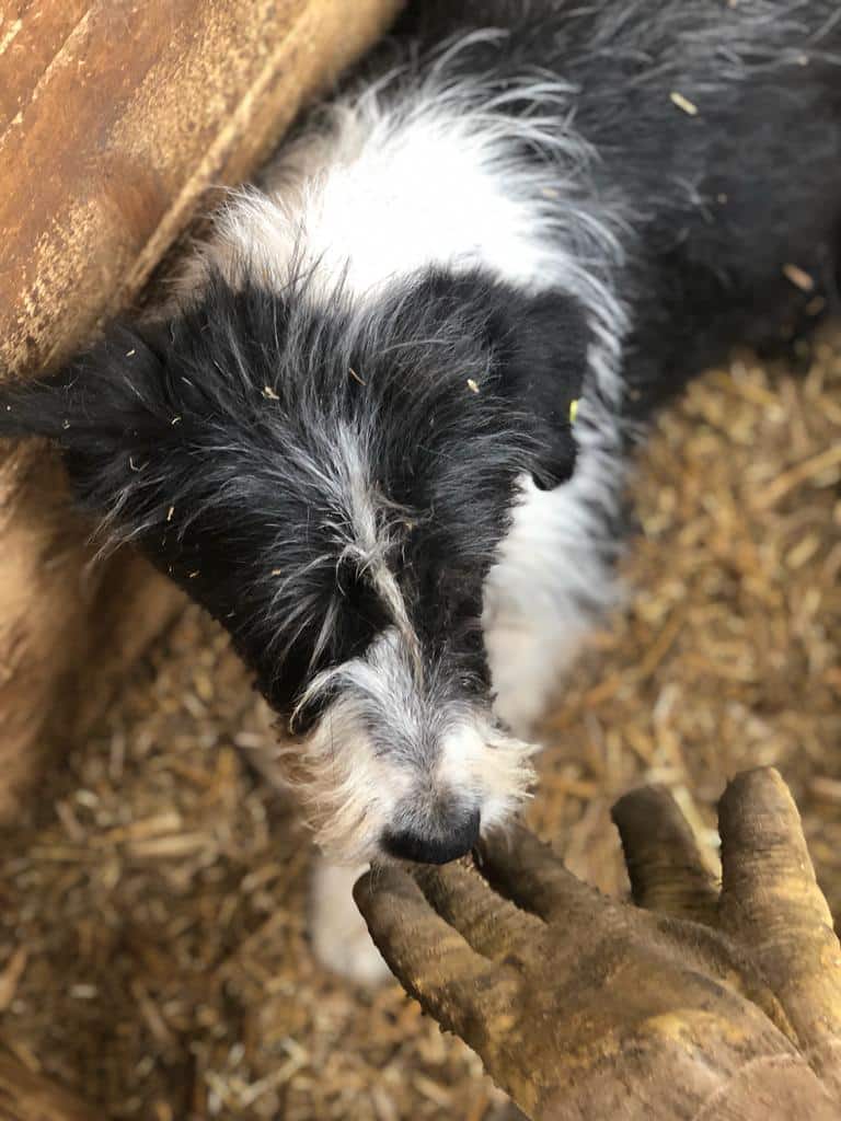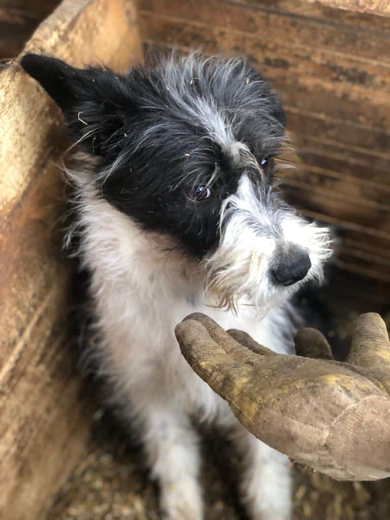 DANTE ist zum Notfall geworden. Er war vor einem Jahr schon zu dünn, auch jetzt ist er nur Haut und Knochen. Wir fanden ihn hinter der Hütte eingequetscht, unter mehreren anderen Hunden liegend. Wir konnten ihn hervorziehen und er hat alles mit sich machen lassen. DANTE hat nicht geschnappt, ist aber nach wie vor sehr unsicher, weil er einfach keinen Menschenkontakt kennt. Als wir ihn rausgeholt hatten, konnten wir erst das ganze Ausmaß sehen. Er hat Bisswunden, ein blutiges Ohr und ist unter seinem langen Fell viel zu dünn. Er sieht schrecklich aus, dabei ist er erst zwei Jahre alt.