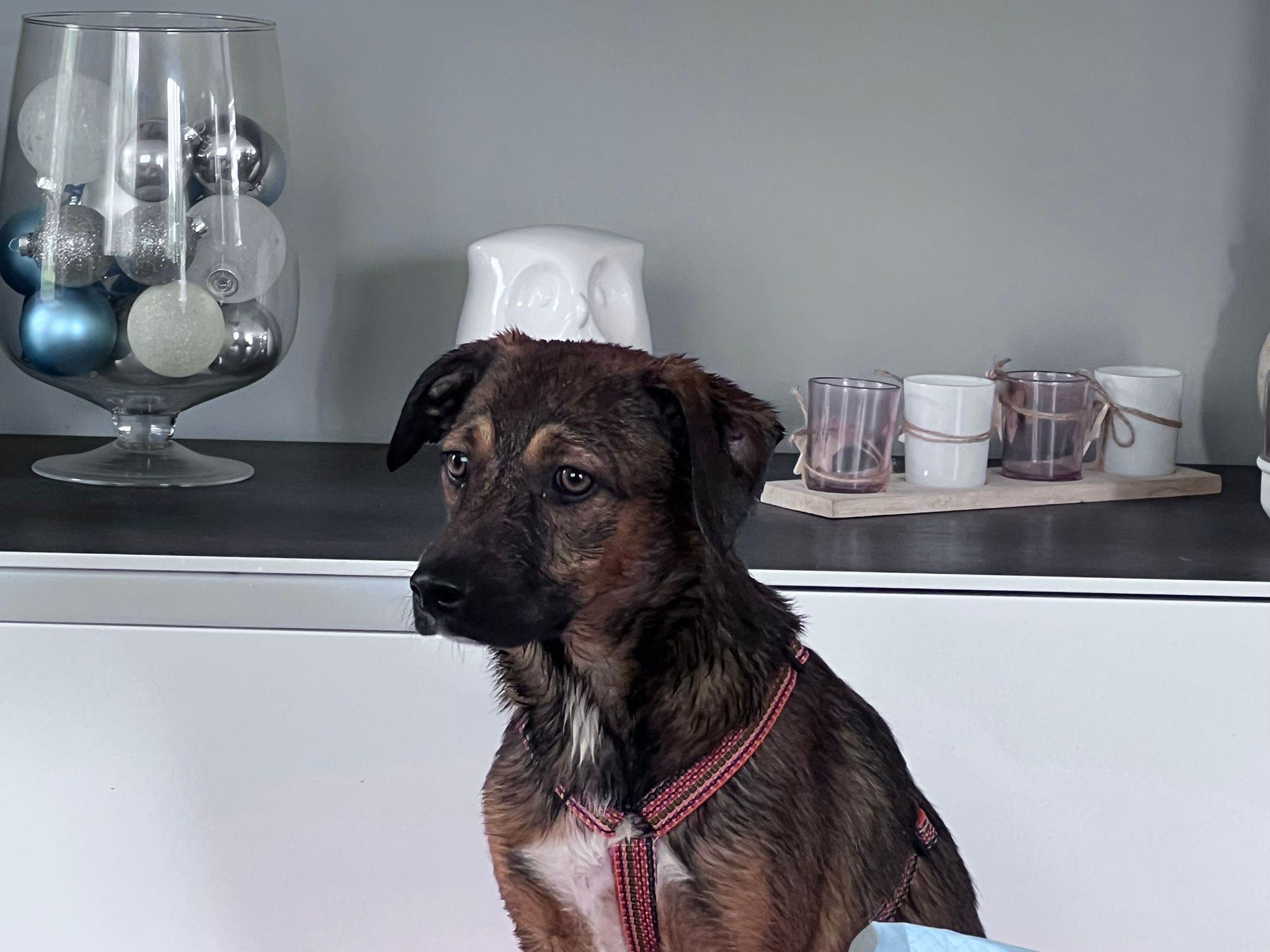 Sie verrichtet alle Geschäfte tüchtig im Garten und beim Spazieren. Die tägliche Routine tut ihr gut und sie wird immer sicherer. Sie schläft brav in ihren Bettchen, ist unglaublich verschmust und anhänglich. Bei fremden Leuten ist sie zunächst kurz noch etwas zurückhaltend, dies legt sich aber in einigen Minuten wieder.