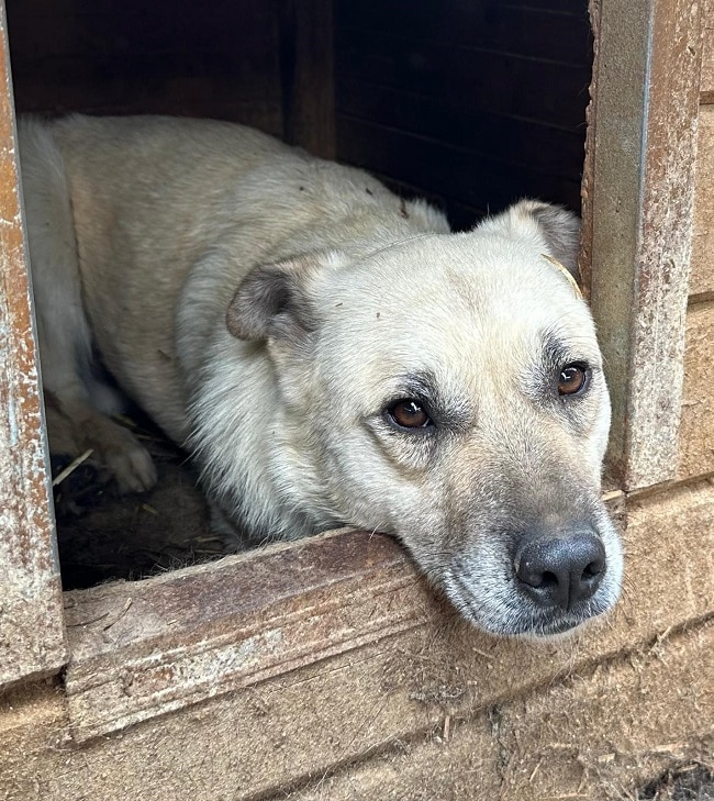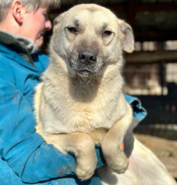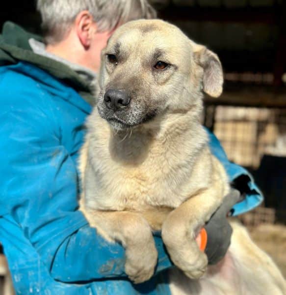 Darius hielt sich ruhig in seiner Hütte auf, als wir den Kennel betraten und wich so zunächst dem Trubel um ihn herum aus. Leckerlies nahm er gerne aus der Hand. In seiner geschützten Umgebung, seiner Hütte, ließ er sich ohne Abwehrverhalten streicheln. Man merkt ihm an, dass ihm der regelmäßige Kontakt zum Menschen fehlt. Wir hoffen sehr, dass er schnell einen Platz findet, damit er nicht noch zurückhaltender wird. Mit seinen Kennelmitbewohnern ist Darius gut verträglich.