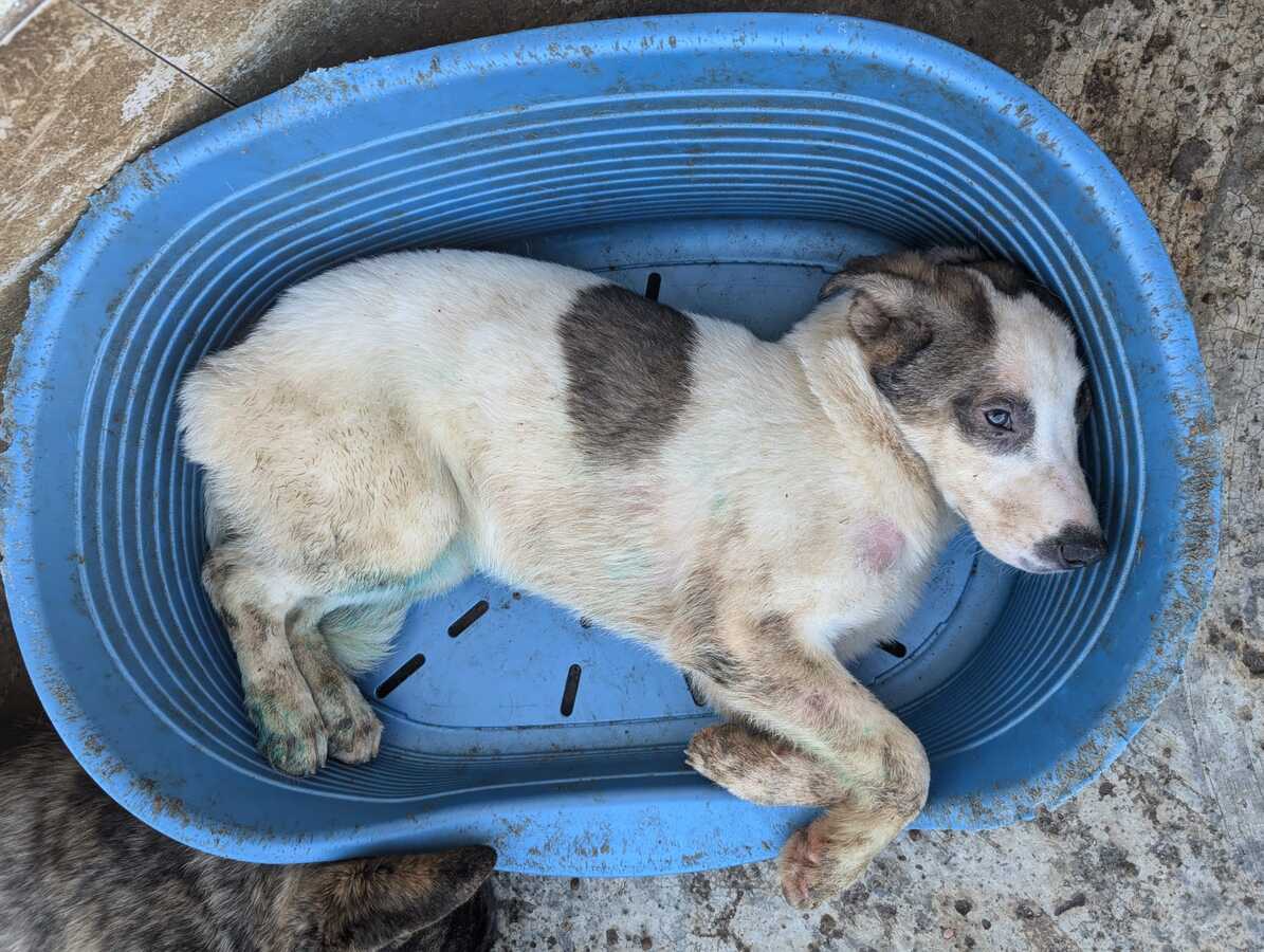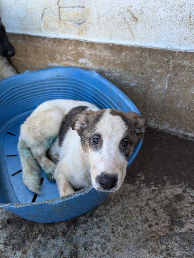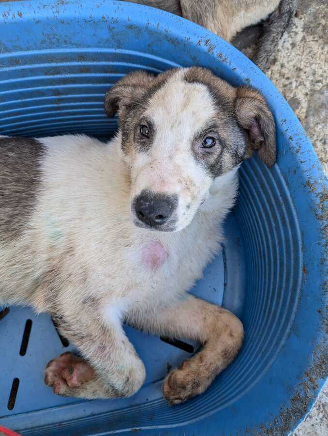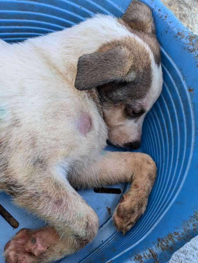 DAYITA ist zusammen mit ihren Geschwistern DIDDL und PETITO im Shelter gelandet. DAYITA und DIDDL hatten mit einer Verletzung an den Pfötchen, aufgrund von Desinfektionsmittel, zu kämpfen. Dadurch zuckte ihr Beinchen noch etwas.