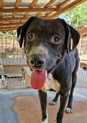 Der stattliche DENIM ist zum Glück nicht mehr zu dünn. Seine entzündeten Augen sehen viel besser aus, doch leicht verklebt waren sie noch immer. Der Shelter ist einfach der falsche Ort, um zu heilen.