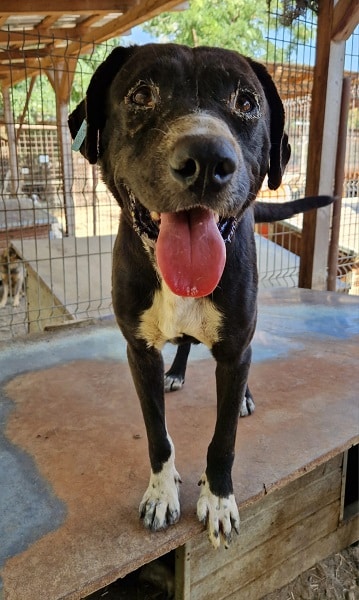 DENIM zeigte sich von der ersten Sekunde an sehr freundlich und aufgeschlossen. Er freute sich über den seltenen Besuch, sprang verzweifelt an uns hoch und ließ sich gern überall streicheln. Aufgrund eines anderen Rüden, den wir nicht richtig einschätzen konnten, blieben wir am Kenneleingang stehen. Das war für DENIM kein Problem, denn er suchte von sich aus die ganze Zeit unsere Nähe. Man merkt ihm an, wie sehr er sich nach Zuwendung sehnt und wir hoffen, dass er schon bald die Chance erhält, endlich auf die Sonnenseite des Lebens zu wechseln und seine Sorgen hinter sich zu lassen. In der Hundegruppe zeigte er sich verträglich.