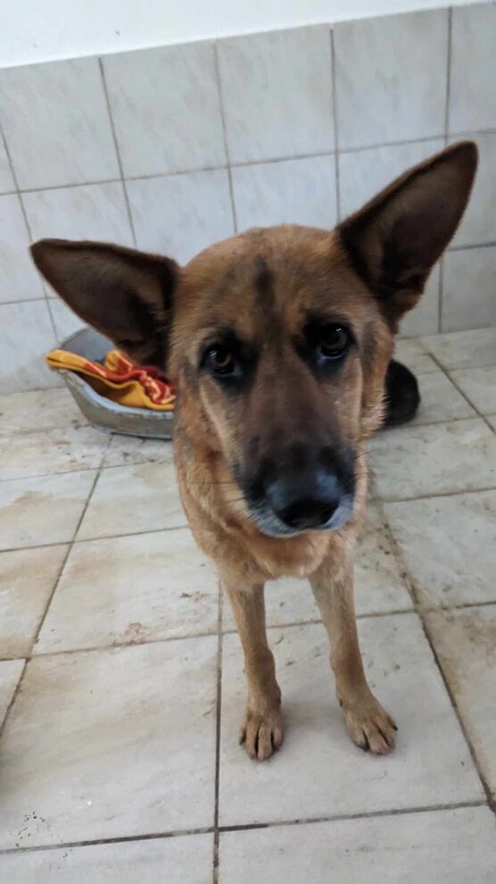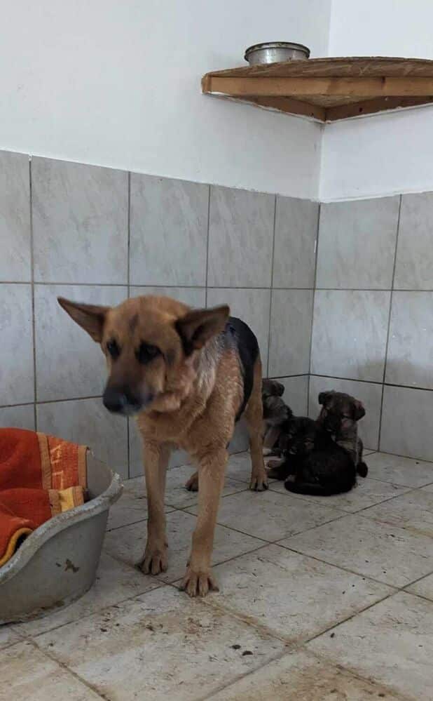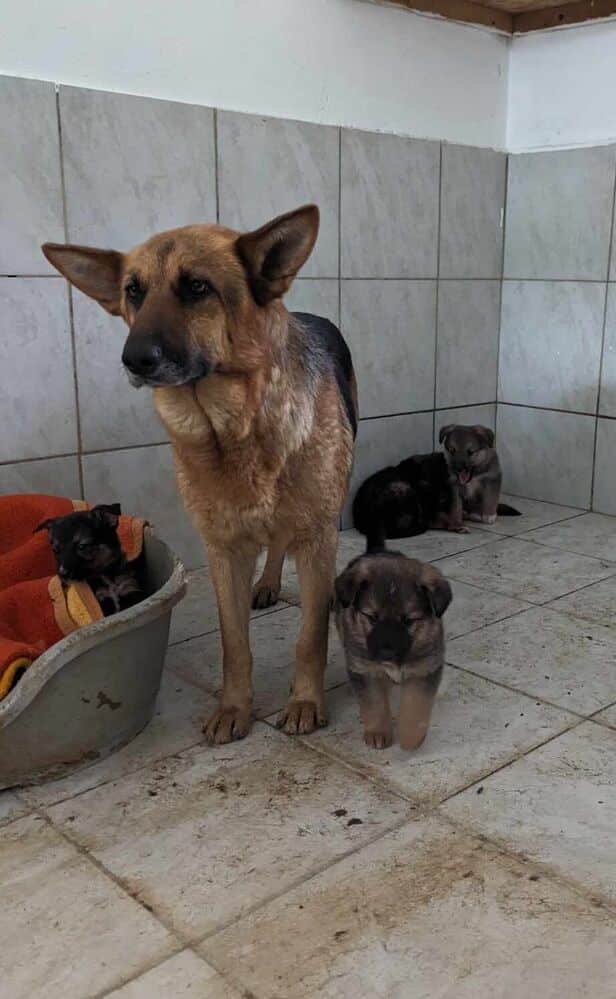 Diese liebe Schäfi-Mix Hündin DEPHNE ist mit ihren vier Welpen neu im Vethouse untergebracht. Die Hundemama ist sehr nett, ruhig und gern anfassbar.