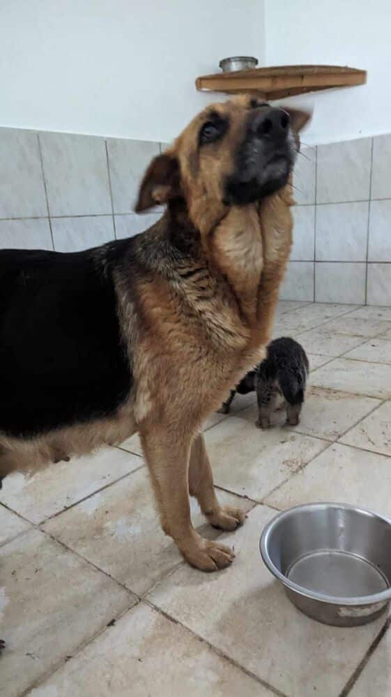 DEPHNE kümmert sich liebevoll um die kleinen Welpen-Buben.