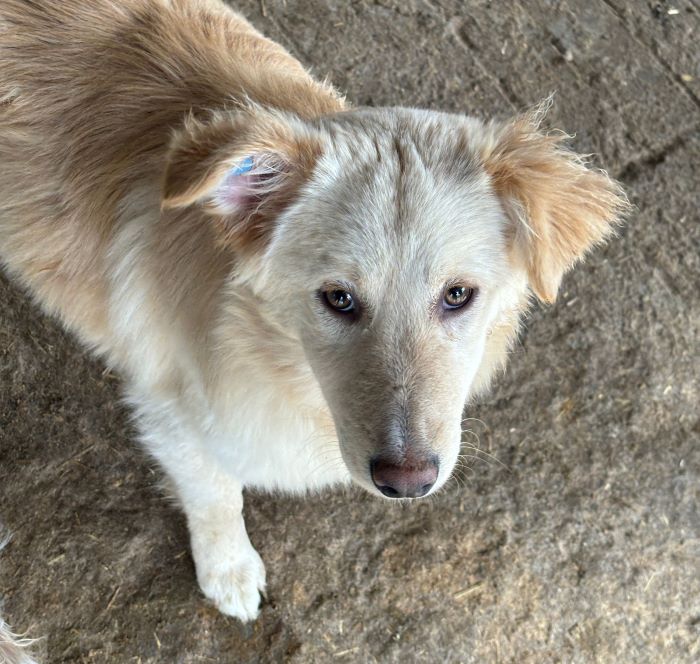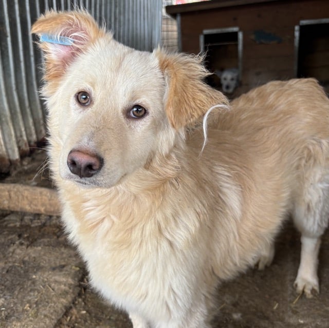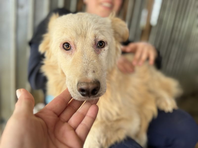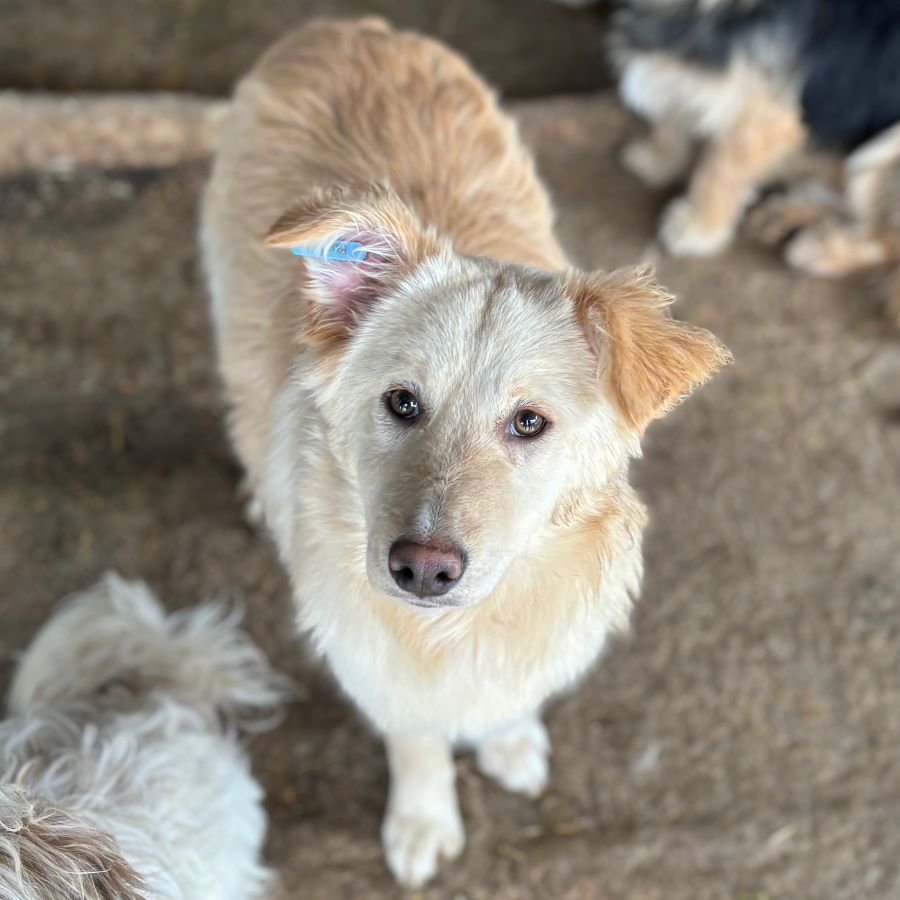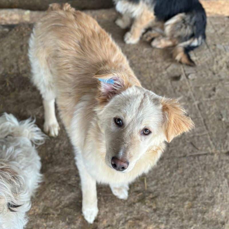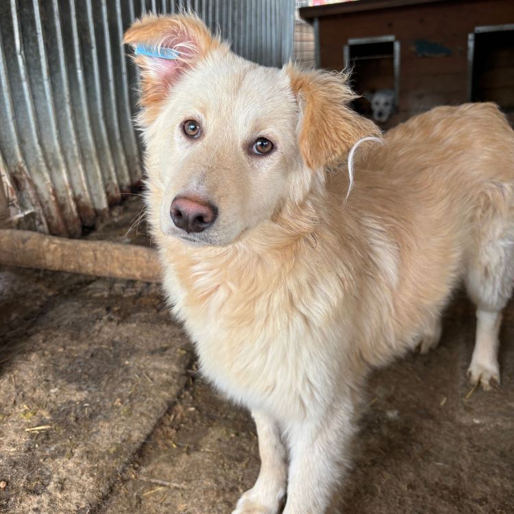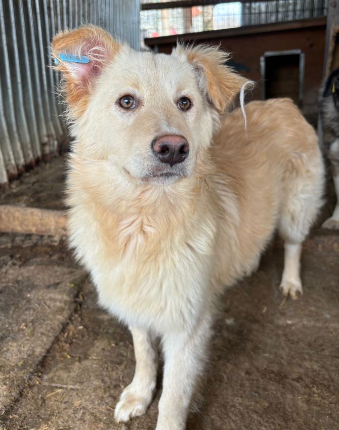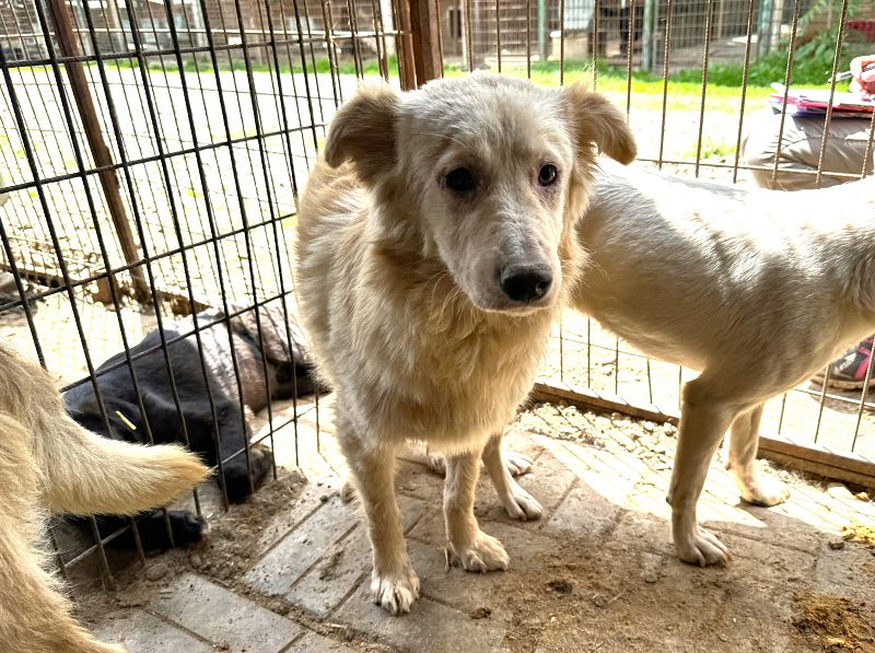 Diese wunderschöne junge Hündin zeigte sich bei unserem Besuch von der ersten Sekunde an sehr freundlich und interessiert. Die mitgebrachten Leckerlie brachen rasch das erste Eis und so nahm DÈSIRÈE diese gern direkt aus der Hand. Nach wenigen Momenten konnten wir sie behutsam streicheln. Diese intensive Nähe scheint neu und deshalb noch etwas ungewohnt für DÈSIRÈE zu sein, doch sie ließ es bereitwillig geschehen und würde in einer ruhigen Umgebung bei liebevollen Menschen sicher schnell ganz auftauen und Vertrauen fassen. Mit den anderen Hunden zeigte DÈSIRÈE sich durchgehend sehr verträglich.