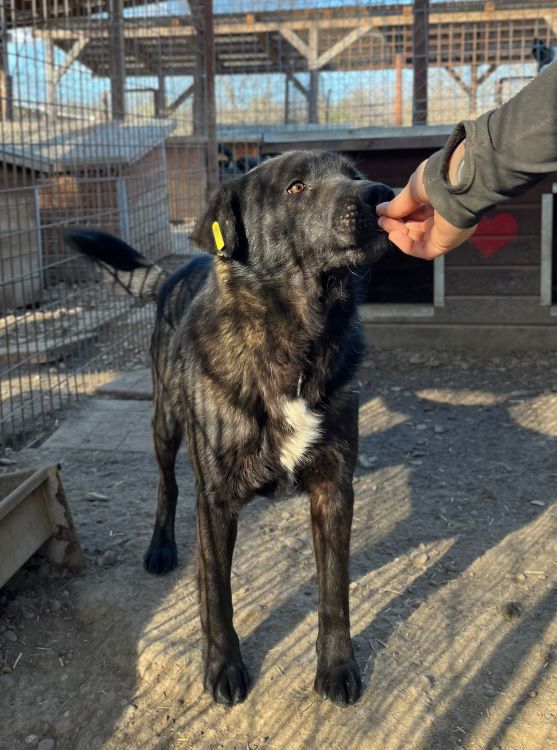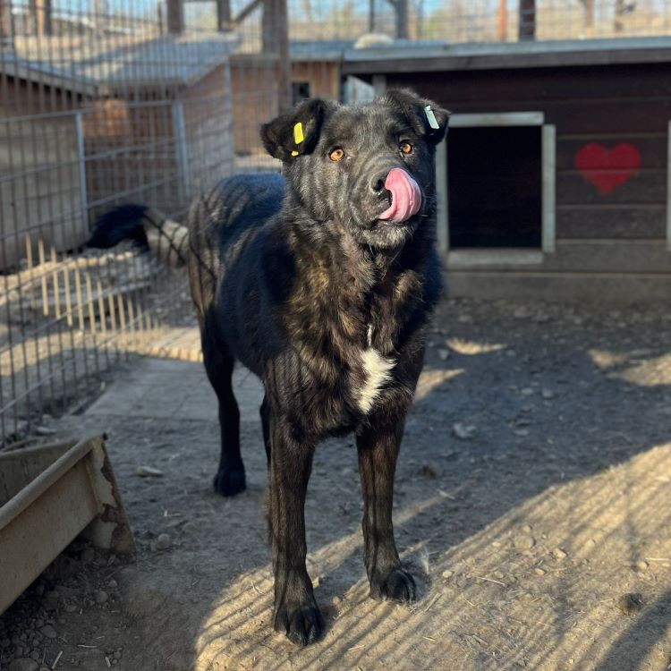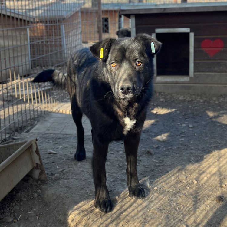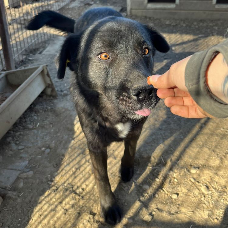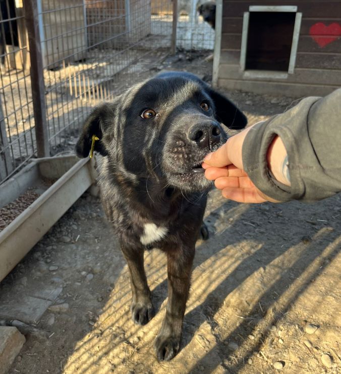 Dieser hübsche Rüde zeigte sich bei unserem Besuch sehr neugierig. Immer wieder kam DEVAKI ganz dicht heran, um an unseren Händen zu schnuppern und sich Leckerlie abzuholen. Seine Rute wedelte pausenlos und man sah ihm an, dass er hin- und hergerissen war zwischen seiner Neugier und seiner Skepsis. Der letzte Schritt fehlte, um uns komplett zu trauen. Wir hoffen sehr, dass sich schon bald ein erfahrener und liebevoller Platz findet, wo DEVAKI in seinem Tempo ankommen darf. Seine neugierige Art sowie seine Vorliebe für Leckereien werden ihm dabei helfen, Vertrauen zu uns Menschen zu fassen. Mit seinem Kennelgenossen zeigte er sich verträglich und ein aufgeschlossener Ersthund, an dem DEVAKI sich orientieren kann, wäre sicher eine große Hilfe.