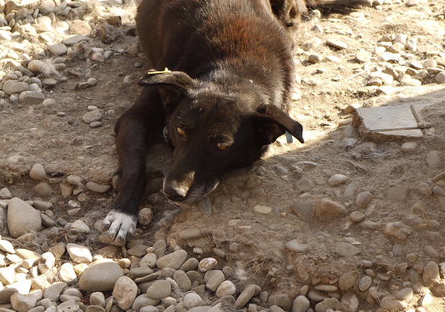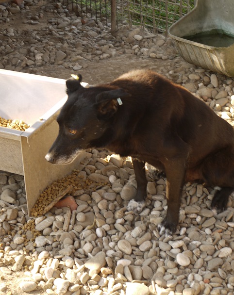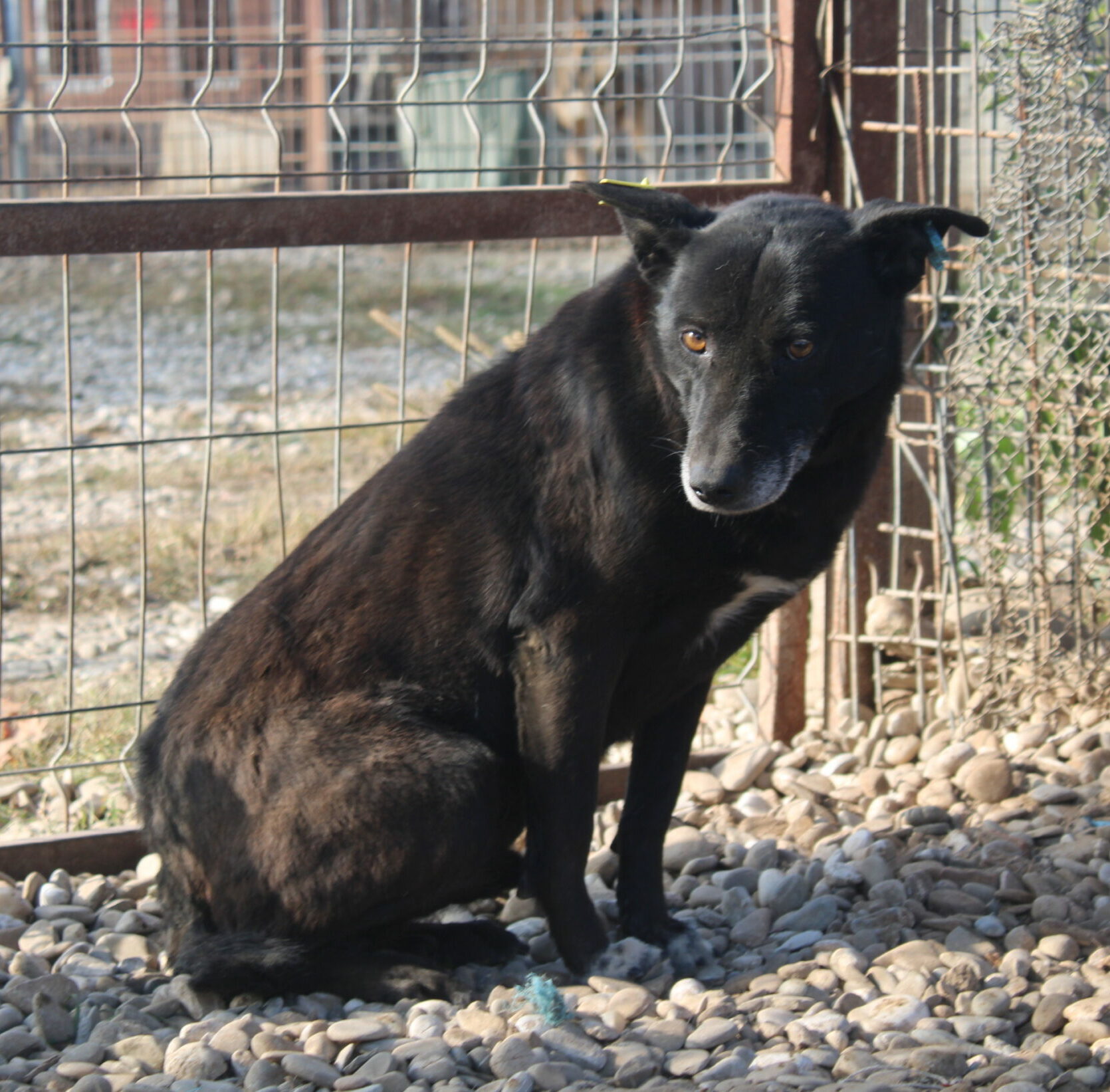 DEVIN ist leider weiterhin scheu und wollte mit uns nichts zu tun haben. Als wir den Kennel betraten, versteckte er sich im Schutz der Hütte. In seinem Rudel, welches schon lange in dieser Konstellation zusammenlebt, wirkt er verträglich.