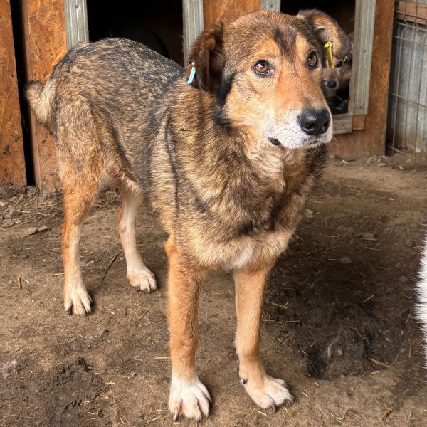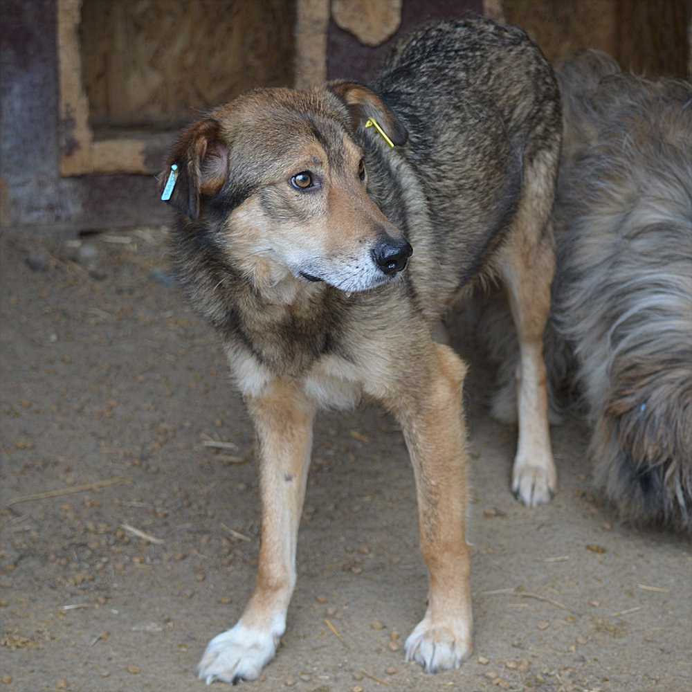 Seit nun bereits bald 3 langen Jahren hofft der hübsche DEVIS vergeblich auf seine Chance. Er zeigte sich bei unserem Besuch sehr neugierig. Auch wenn er stets in der zweiten Reihe stand und einen kleinen Sicherheitsabstand einhielt, beobachtete er aufmerksam unser Tun. Von allein suchte er nicht den direkten Kontakt, doch im Vorbeigehen konnten wir ihn kurz berühren. Diese ungewohnte Nähe verdutzte ihn zunächst, doch seine Neugier trieb ihn immer wieder bis auf einen Meter an uns heran. Man merkte, dass er sich in der Hundegruppe sicherer fühlte, weshalb wir uns für ihn in seinem neuen Zuhause mindestens einen aufgeschlossenen Ersthund wünschen, an dem er sich orientieren kann. Bei erfahrenen und liebevollen Menschen, die DEVIS behutsam an die Pfote nehmen, würde er sicher schon bald die Vorzüge des Zusammenlebens auf der Sonnenseite zu schätzen wissen und schließlich Vertrauen fassen können.