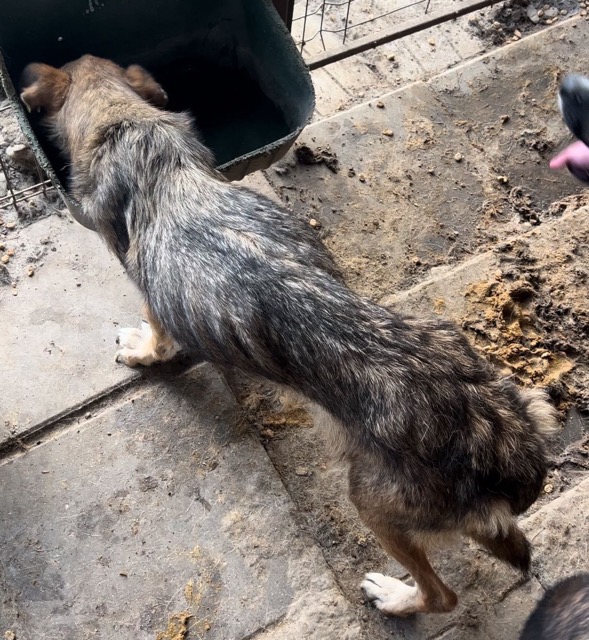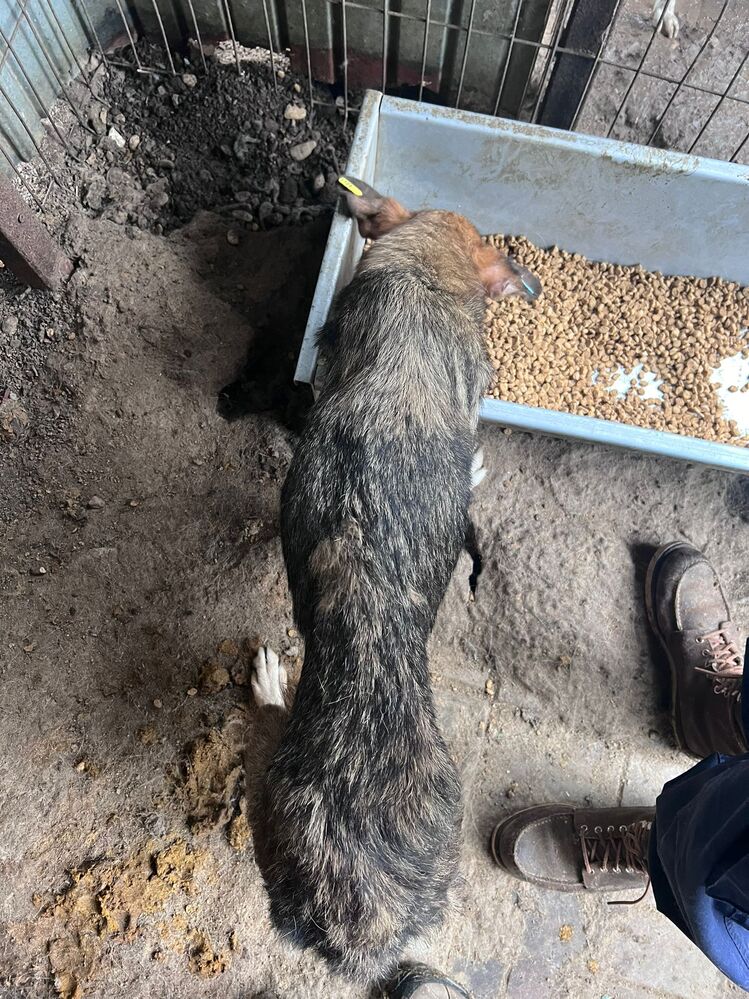 Als wir DEVIS in seinem Kennel antrafen, sind wir erschrocken, wie dünn er geworden ist. DEVIS wird von den anderen Hunden nicht ans Futter gelassen. In unserer Anwesenheit traute er sich an den Futtertrog und schlang hastig das Futter hinunter.