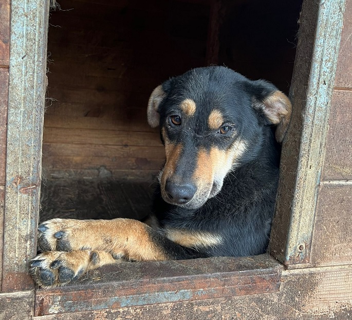 Als wir außen am Kennelgitter standen, war DHARMA sofort da und holte sich Streicheleinheiten ab.. Als wir den Kennel dann betraten, beobachtete sie uns erst aus ihrer Hütte heraus. Wir vermuten, dass ihr die anderen Hunde zu wild sind und sie sich deswegen erstmal zurückgezogen hat. Als wir dann zu ihr kamen, freute sie sich sehr und streckte uns ihre Pfote entgegen. Auch wenn das Streicheln für sie anfangs noch ungewohnt ist, genießt sie den Kontakt mit dem Menschen und wollte uns am liebsten gar nicht mehr gehen lassen. Sie ist eine sehr sanfte, liebe und eher ruhige Hündin.