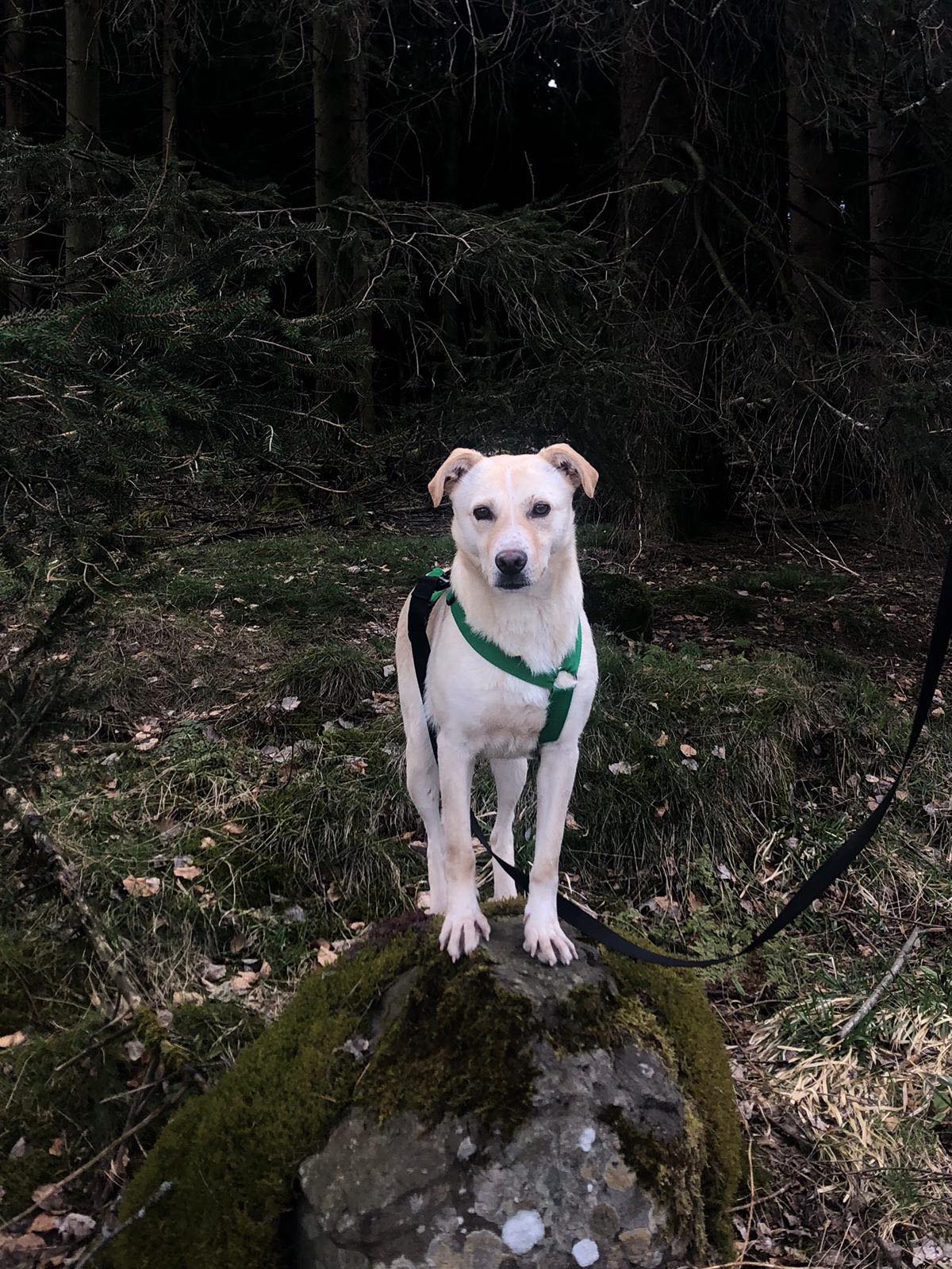 Seit Mitte März lebt Dietrich auf seiner Pflegestelle. Mit seiner Bezugsperson war er im Umgang direkt von Beginn an ein wirklich großer Schatz! Auch Auto-, Bus-, Zugfahren oder der Biergarten- und Stadtbesuch sind für ihn kein Problem Stubenrein ist er auch.