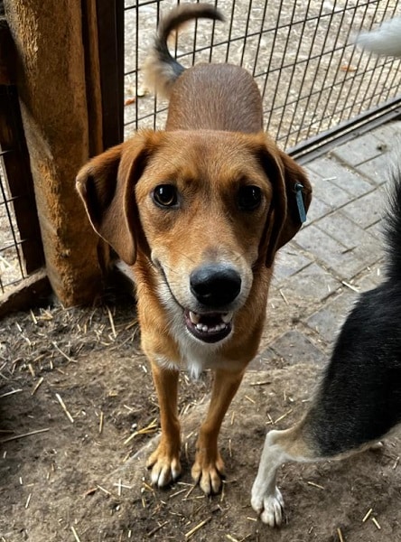 DISNEY hat es als Welpe leider nicht aus dem Shelter geschafft und ist inzwischen 2 Jahre alt. Er teilt sich seinen Kennel mit weiteren sitzengebliebenen jungen Hunden und zeigt sich hier weiterhin gut verträglich. Bei unserem Besuch war er immer neugierig mit dabei und hat sich auch Leckerchen abgeholt, wobei er vorsichtig an der Nase berührt werden konnte, zu mehr fehlte ihm aber der Mut. Da er intensiven Kontakt zum Menschen nicht kennt, ist dies auch kein Wunder. Seine Neugier und Offenheit bilden für erfahrene Menschen aber eine gute Basis, um sein Vertrauen erlangen zu können. In einem Zuhause sollte auch bereits ein netter Ersthund warten, an dem sich DISNEY orientieren kann, er kennt ja bisher ausschließlich das Leben mit Hunden und orientiert sich an ihnen.