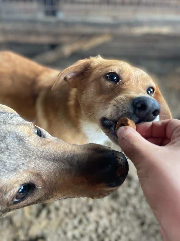 DISNEY war immer neugierig in unserer Nähe und holte sich fleißig seine Leckerchen ab. Er kam zwar immer sehr nah, ließ sich aber nur vorsichtig streicheln – er kennt den Kontakt zum Menschen einfach nicht. Toll für ihn wäre sicherlich ein souveräner Ersthund, an dem er sich orientieren kann. Für Junghund DISNEY wäre es wichtig, dass er zeitnah ausreist, damit er sich nicht noch unsicherer entwickelt.