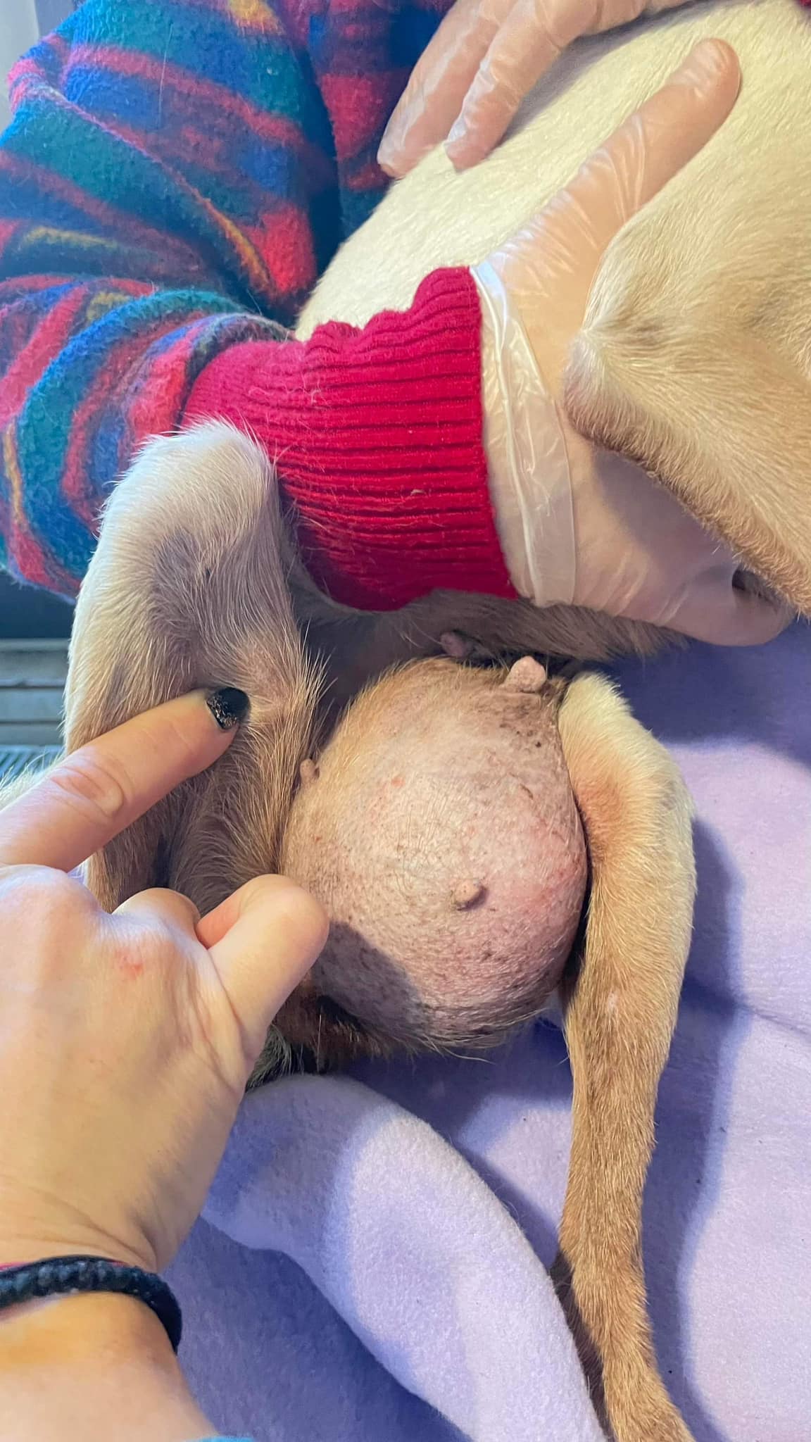 Sie hat sich jetzt ein wenig stabilisiert und wir müssen nun die OP planen, damit der Tumor entfernt wird. Er ist riesig und bereitet ihr Schmerzen…