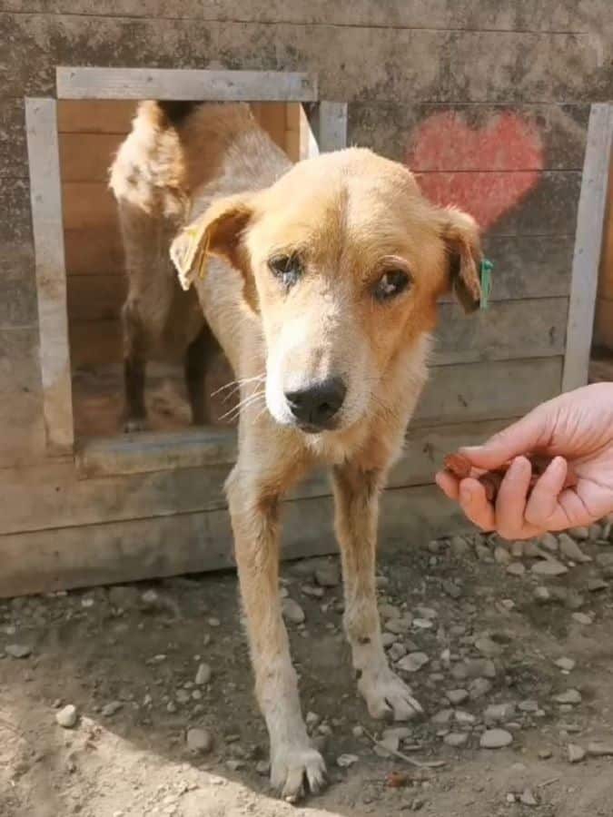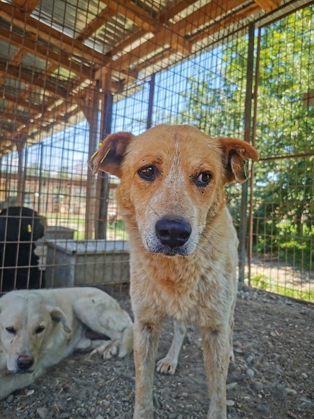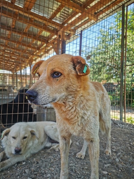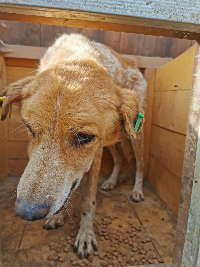 DJANGO geht es leider nicht mehr so gut. Er kommt aufgrund eines anderen Hundes nicht mehr gut ans Futter. Wir haben ihm etwas extra gelegt und konnten beobachten, dass auch dort der andere Hund sofort hinwollte. Uns gegenüber zeigte er sich sofort gut anfassbar und eher hilfesuchend. Er suchte die ganze Zeit von sich aus unsere Nähe und auch teilweise unseren Schutz. Das einzige, wozu sich aufraffen konnte, war das Fangen von lästigen Fliegen, ansonsten stand er eher mit etwas gesenktem Kopf vor uns. Wir haben ihn als netten Rüden kennengelernt, der doch deutlich älter erscheint, als bei seiner Ersterfassung vermutet. Er ist schon etwas zu dünn und wurde auch nicht offensichtlich im Kennel angegangen. Trotzdem scheint er dort etwas zurückgezogen zu leben, um mit dem dominanten und dynamischen Hund keinen Ärger zu bekommen.