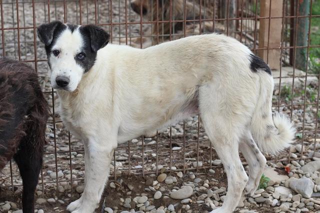 An DOBBIES Körperhaltung ist schon zu erkennen, dass er uns Menschen noch nicht über den Weg traut. Er hatte sicher noch nicht viel Kontakt mit Menschen und bleibt daher lieber im Hintergrund. DOBBIE reagierte nicht panisch, als wir auf ihn zugingen, jedoch traute er sich noch nicht ganz nahe an uns heran.