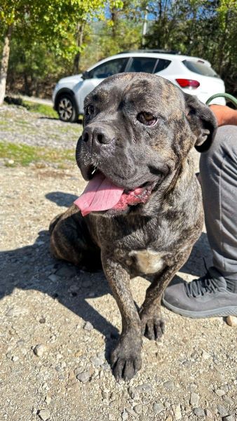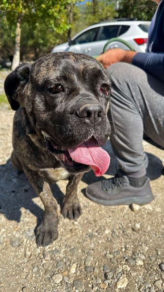 DOLORES ist eine wunderschöne Cane Corso Mix Hündin, die zusammen mit ihrem 6 Monate alten Welpen PUEBLO auf der Straße gefunden wurde. Trotz ihrer schwierigen Vergangenheit zeigt sie sich offen und freundlich.