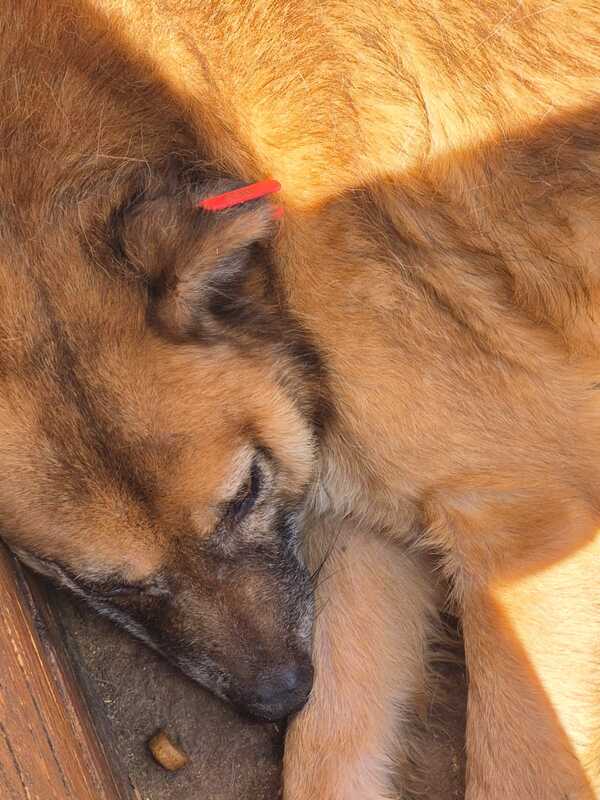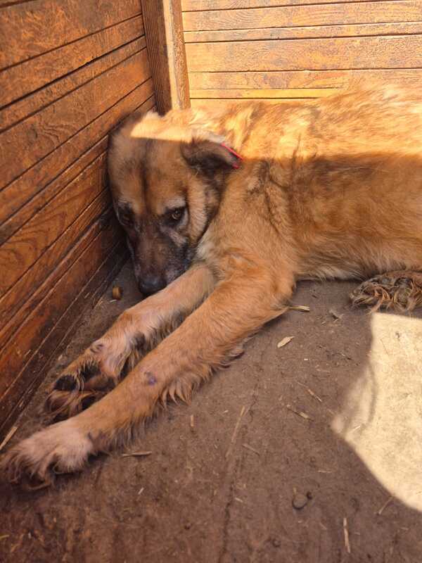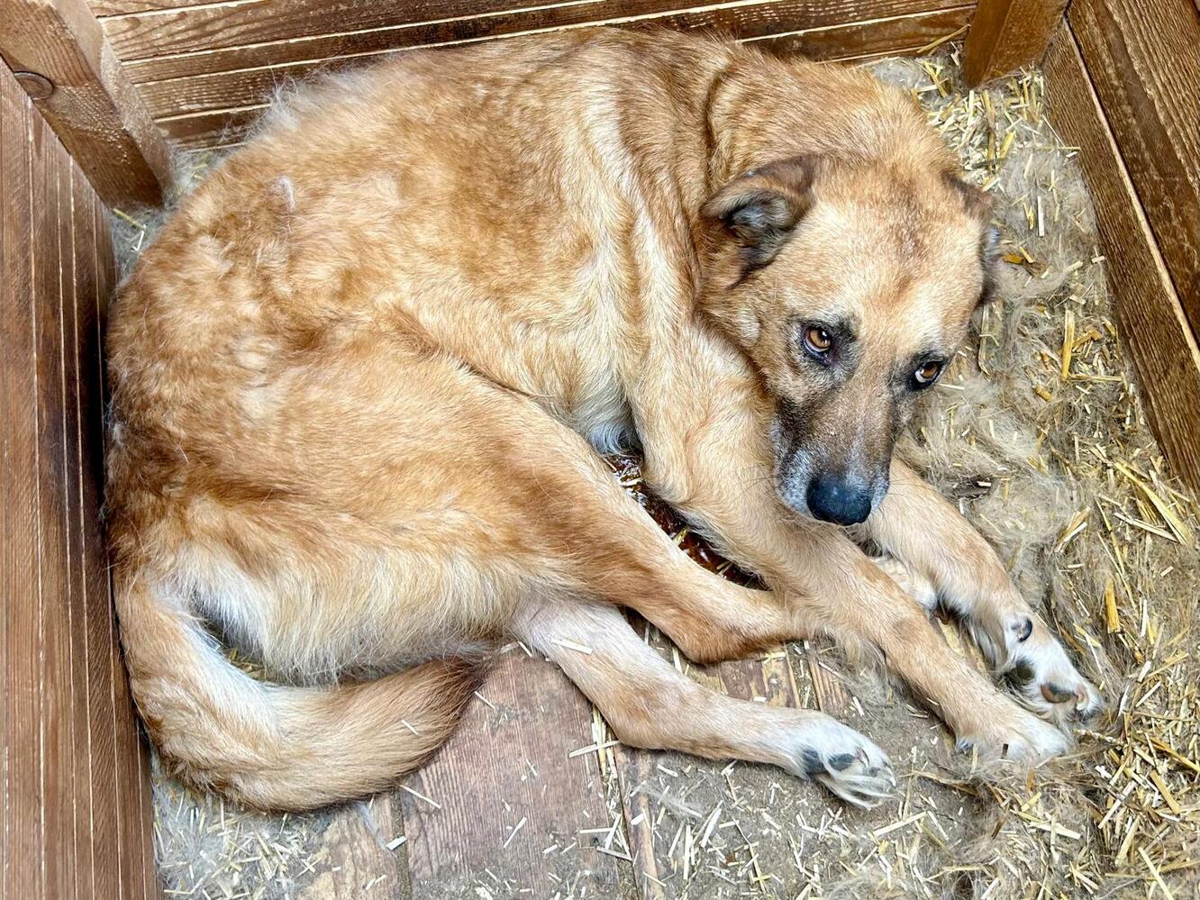 Domani ist leider auch zum seelischen Notfall geworden, er hat sich komplett aufgegeben. In Schockstarre und völlig resigniert lag er in seiner Hütte. Er ließ sich in der Hütte auch ohne Reaktion streicheln. In diesem Zustand wird er nicht mehr lange durchhalten.