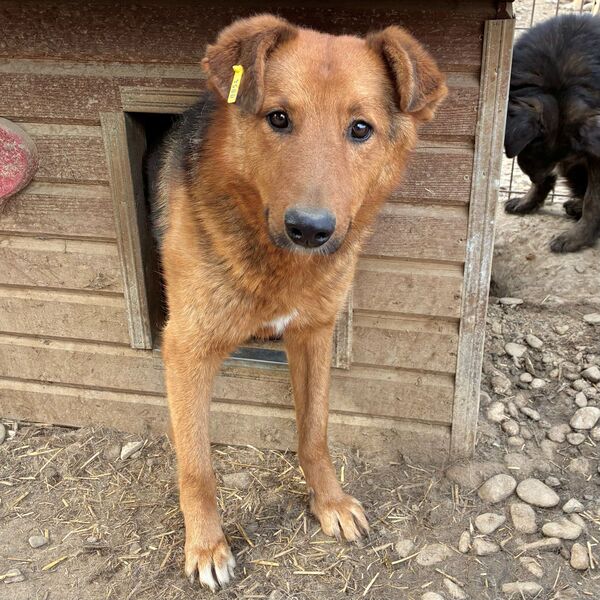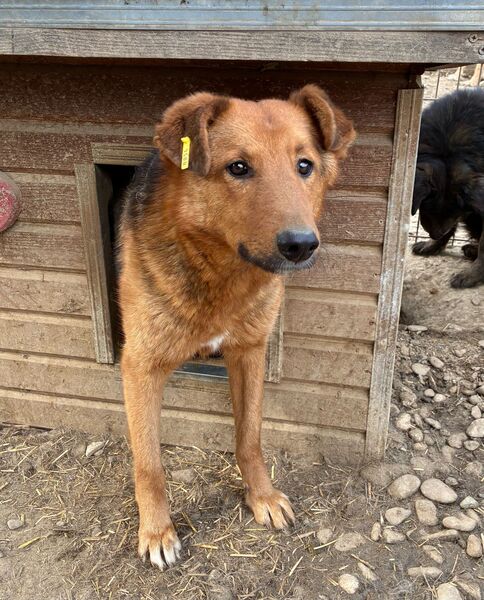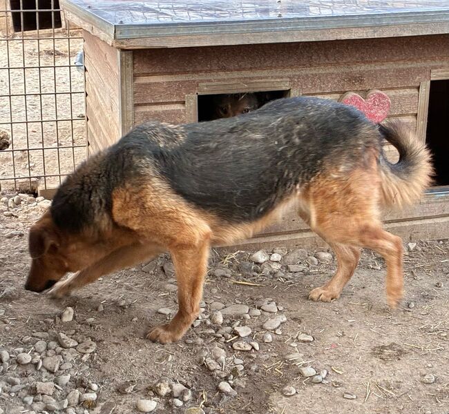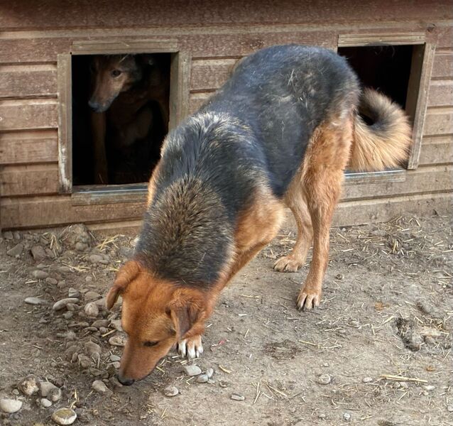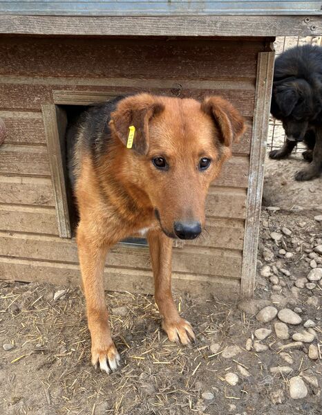 Dieser hübsche Bub mit den niedlichen Knopfaugen schaute zunächst sehr interessiert zu, während wir uns mit den anderen Hunden in seinem Kennel beschäftigten. Als wir uns Domingo in der Hütte zuwandten, war ihm die Nähe nicht ganz geheuer und er wollte die Leckerlie lieber nicht aus der Hand nehmen. Er fraß sie erst, als wir sie ihm hinlegten. Schließlich kam Domingo auch immer wieder mutig und neugierig aus seiner Hütte, um die Leckerlie vom Boden zu sammeln. Da zwei große Rüden in diesem Kennel den Ton angeben, war er ziemlich auf der Hut und immer wieder rasch in seinem Versteck verschwunden. An seinen Ohrmarken können wir erkennen, dass Domingo nun seit bald 3 langen Jahren im riesigen Shelter ausharrt. Wir wünschen ihm, dass seine Neugier nun damit belohnt wird, dass er von erfahrenen und lieben Menschen gesehen wird, die ihn an die Pfote nehmen und Stück für Stück an ein Leben auf der Sonnenseite heranführen. Ein netter Ersthund wäre dem verträglichen Domingo sicher eine große Stütze.