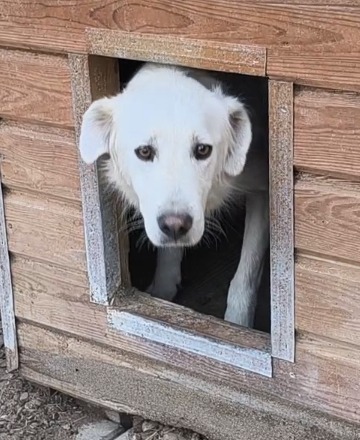 Don hat kurz seine Hütte verlassen, als wir im Kennel waren. Ihm war die Situation sichtlich unwohl und so hat er sich auch recht schnell wieder in die sichere Hütte zurückgezogen.