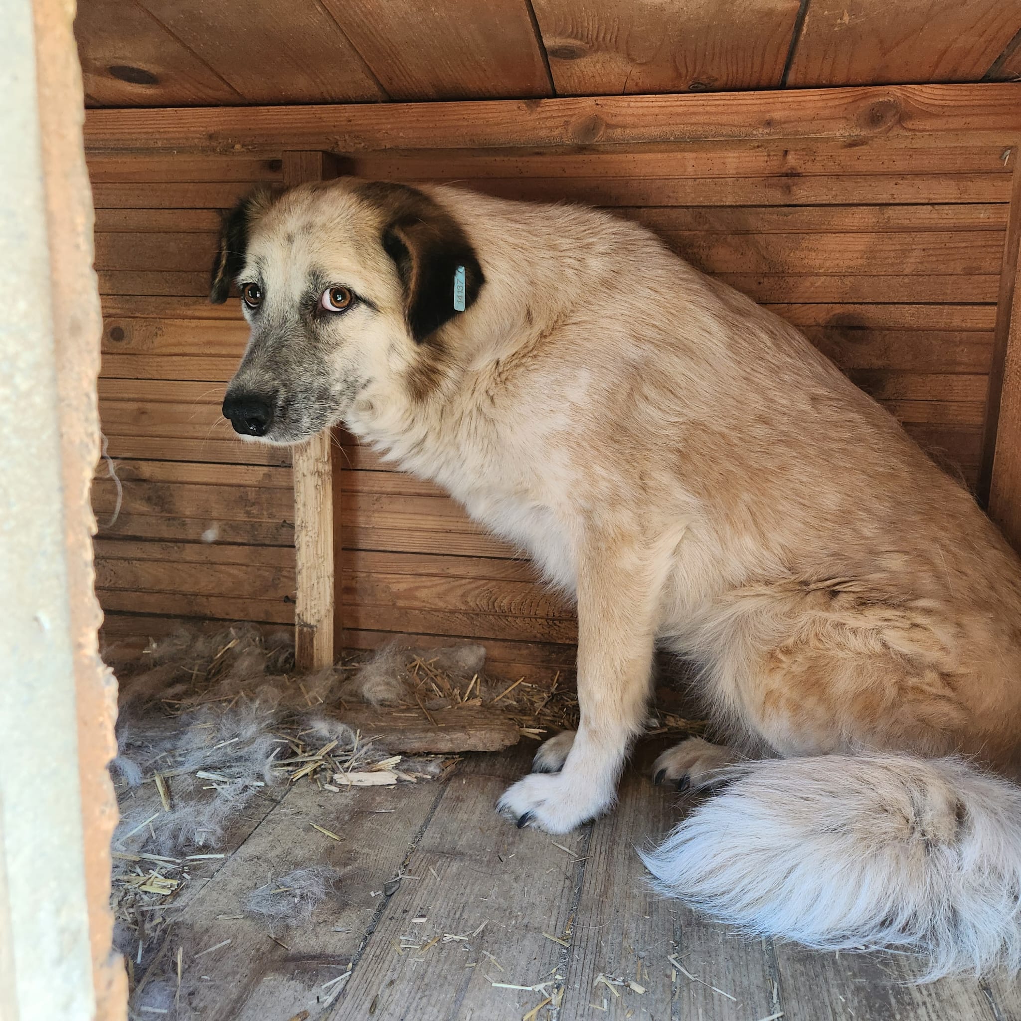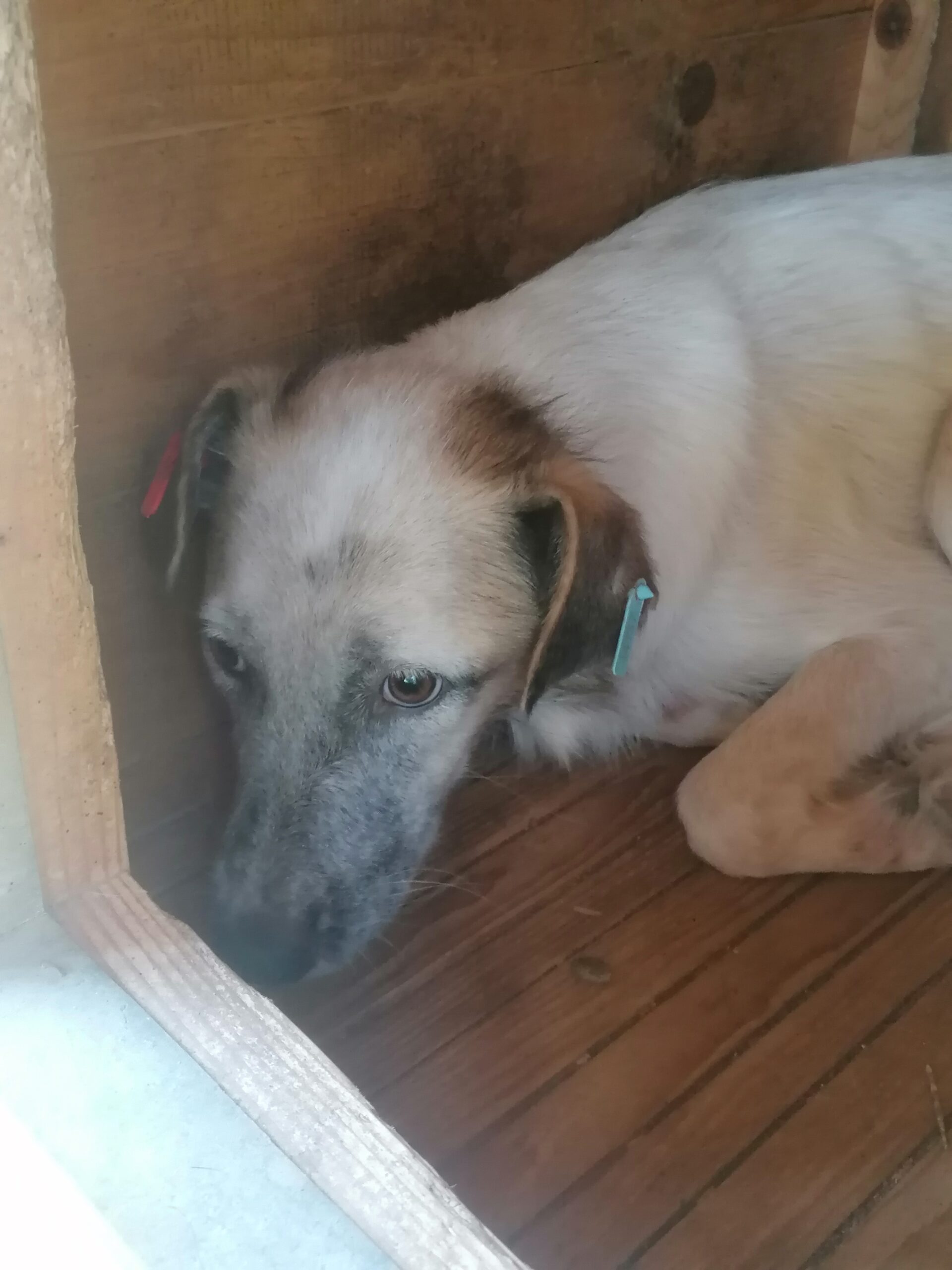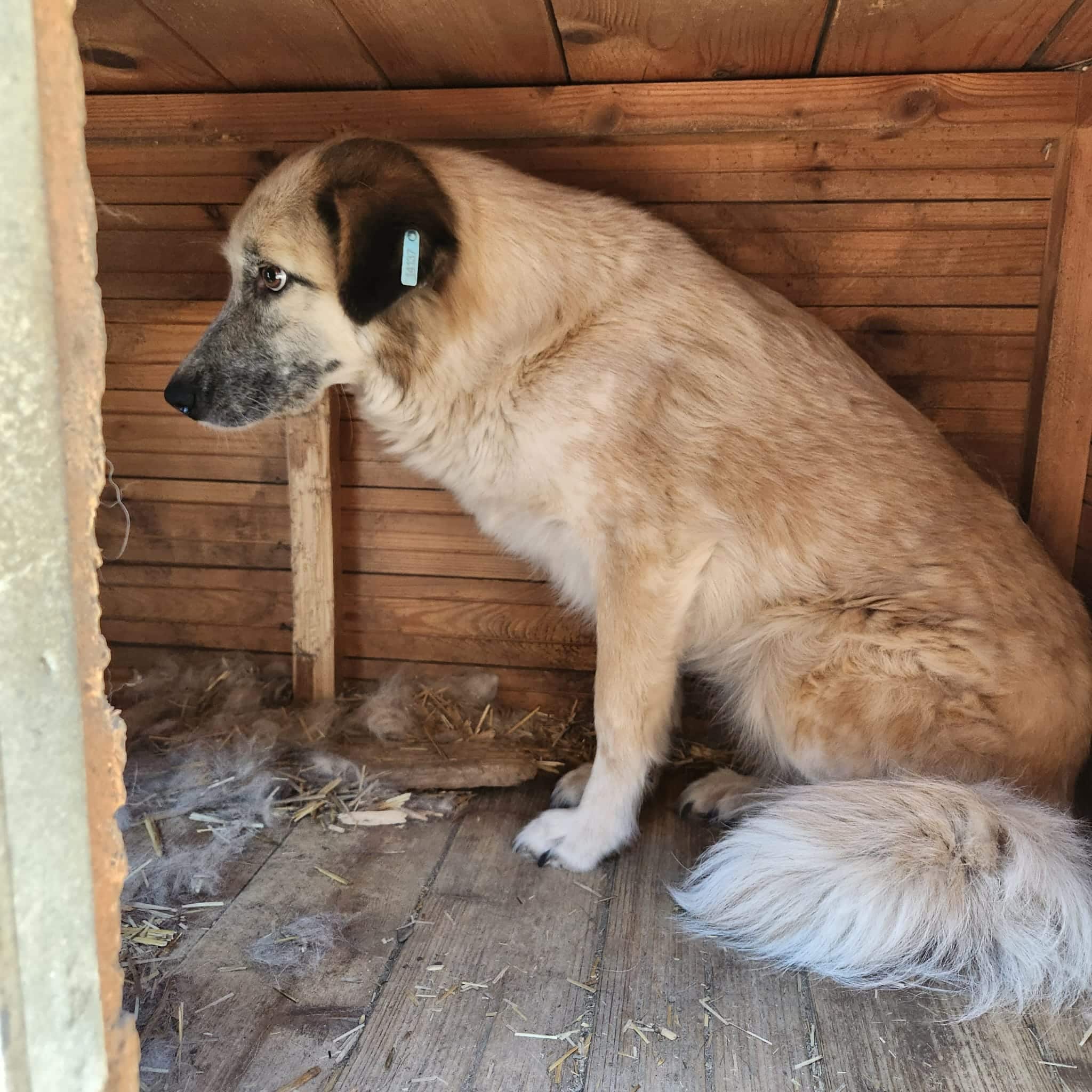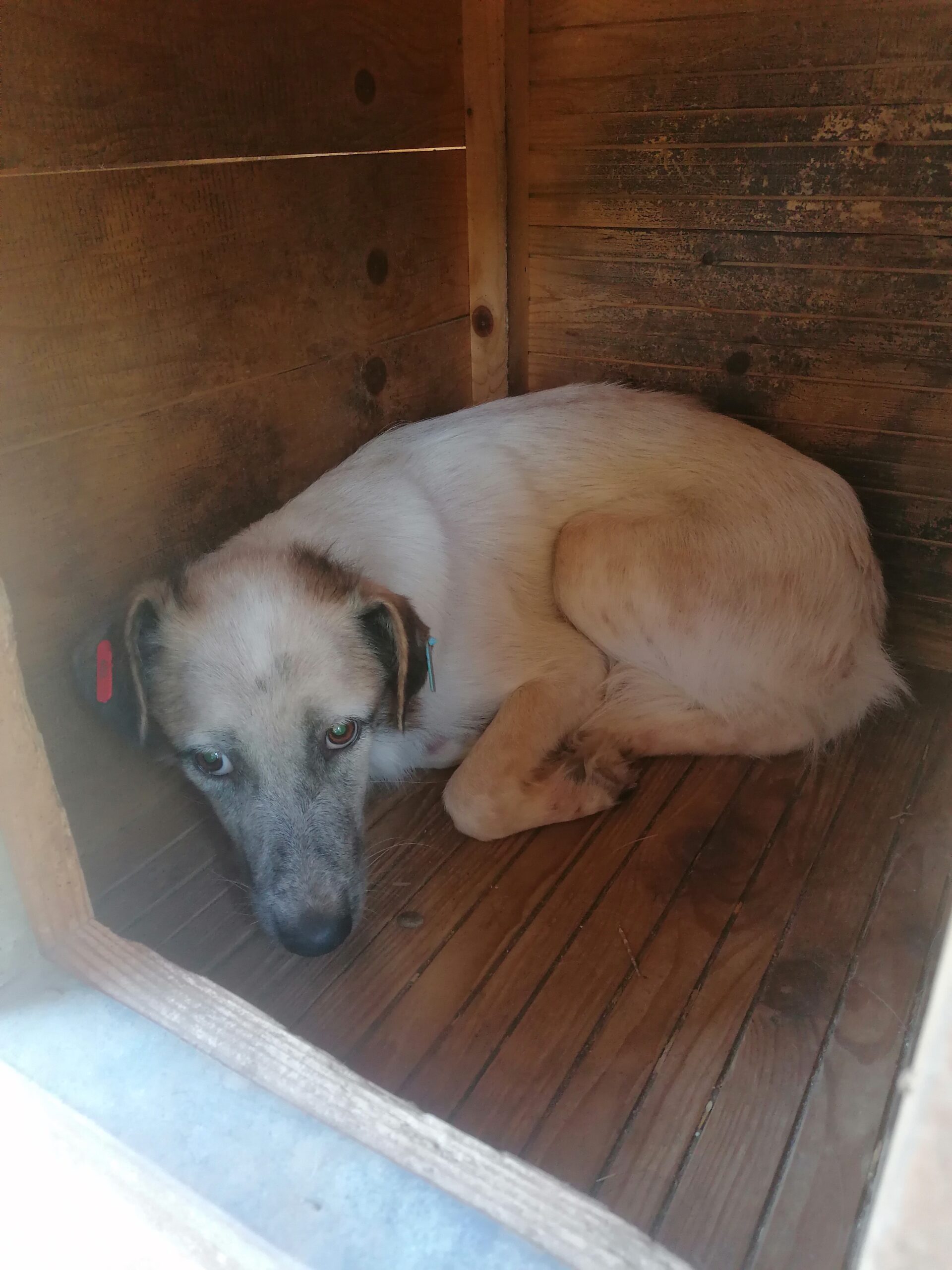 Wir fanden DONNA zurückgezogen in einer Hütte, nachdem sie leider fast ein Jahr lang vermisst wurde… Sie ist einfach so eine zurückhaltende Hündin, dass sie in der Masse total untergeht. Leider war es uns aus Zeitmangel nicht möglich, uns ihr behutsam zuzuwenden und zu bedrängen. DONNA kommt mit ihrer Situation im Shelter nur schlecht zurecht und bräuchte dringend eine ruhige Umgebung. Bei unserem Besuch war sie so gestresst, dass sie nicht einmal unsere hingeworfenen Leckerlie naschen mochte… Für die sensible Hündin suchen wir dringend einen ruhigen und liebevollen Platz bei erfahrenen Menschen, die sie in ihrem Tempo ankommen und auftauen lassen und behutsam Schritt für Schritt aus ihrem Schneckenhaus locken möchten. Ein souveräner Ersthund würde ihr die Umstellung sicher erleichtern.