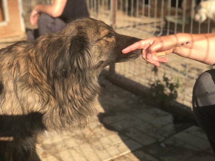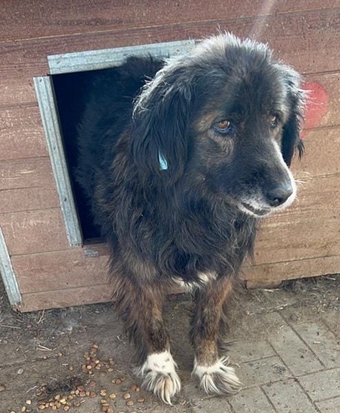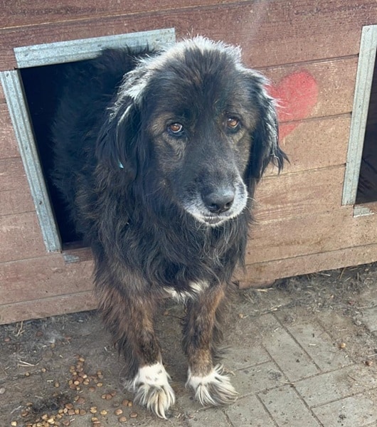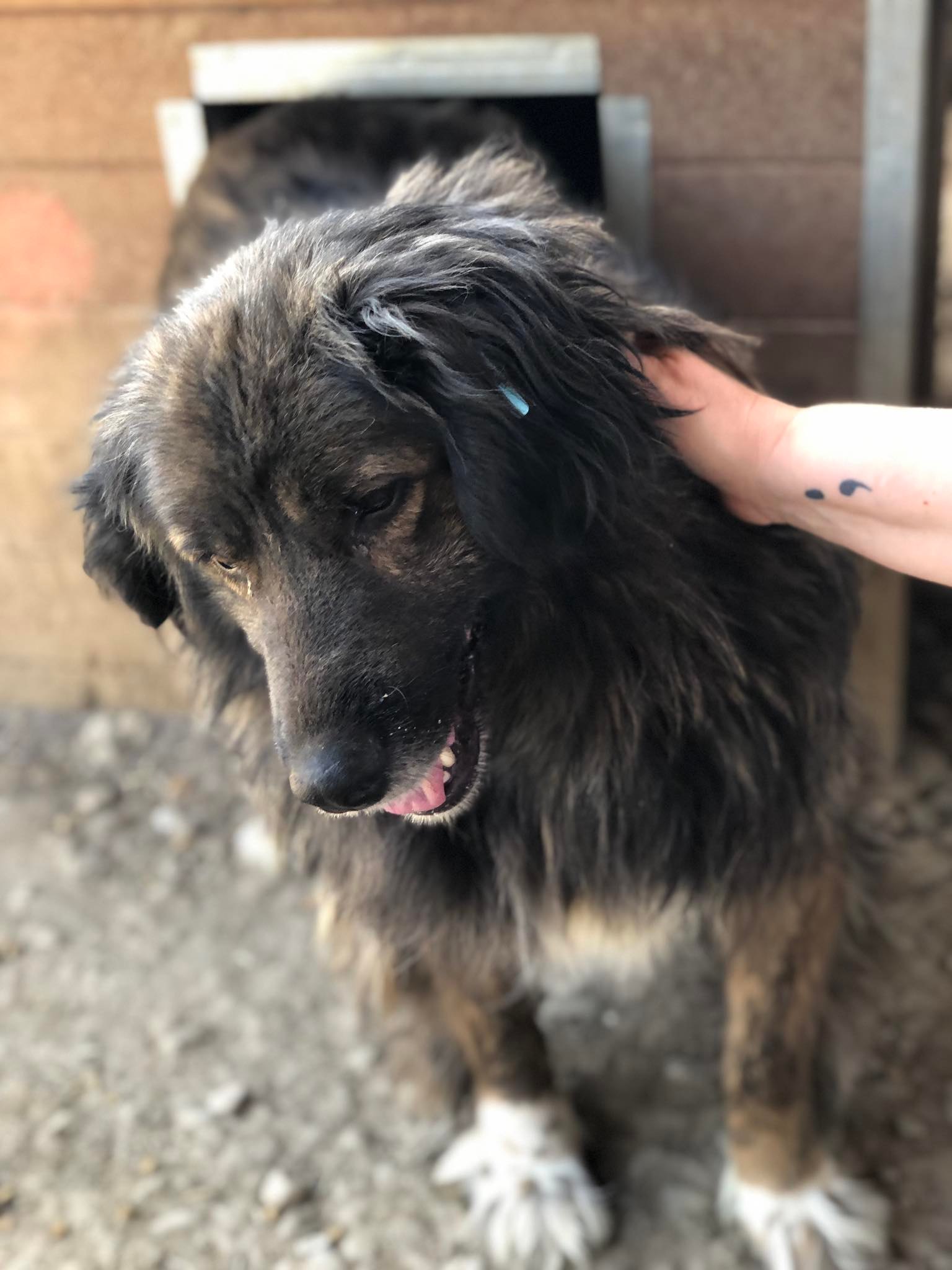 Donnie ist nach all den Jahren im Shelter zum Nofall geworden, er kommt nicht mehr richtig an Wasser und Futter und ist viel zu dünne. Sein stark verfilztes Fell macht ihm weiterhin Probleme, wir wollten ihm das Fell schneiden, aber die normale Schere war viel zu schwach dafür durch den Pelz zu kommen, hier benötigt es mehr Zeit oder eine Schermaschine um ihn wieder zu einem hübschen und stolzen Rüden werden zu lassen. An der Flanke fehlt ihm Fell, ob es hier eine Bisswunde gab die verheilt ist oder andere Gründe, wissen wir nicht. Er ist absolut nett und freundlich und kam direkt aus seiner Hütte und ließ sich sehr gut streicheln. Auch festhalten war für ihn absolut in Ordnung.